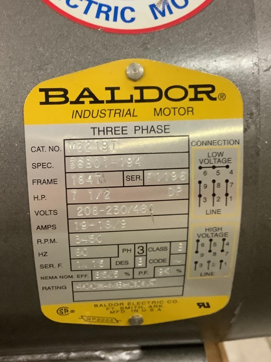 Baldor Industrial Motor Three Phase Cat. No. V3219T 7 1/2HP 3400RPM no box