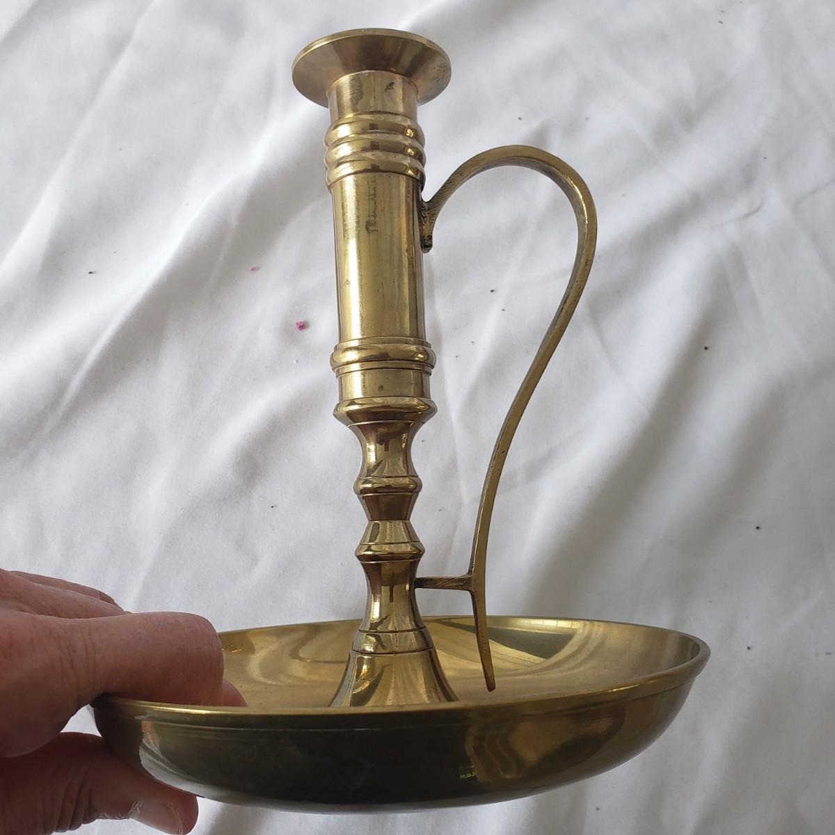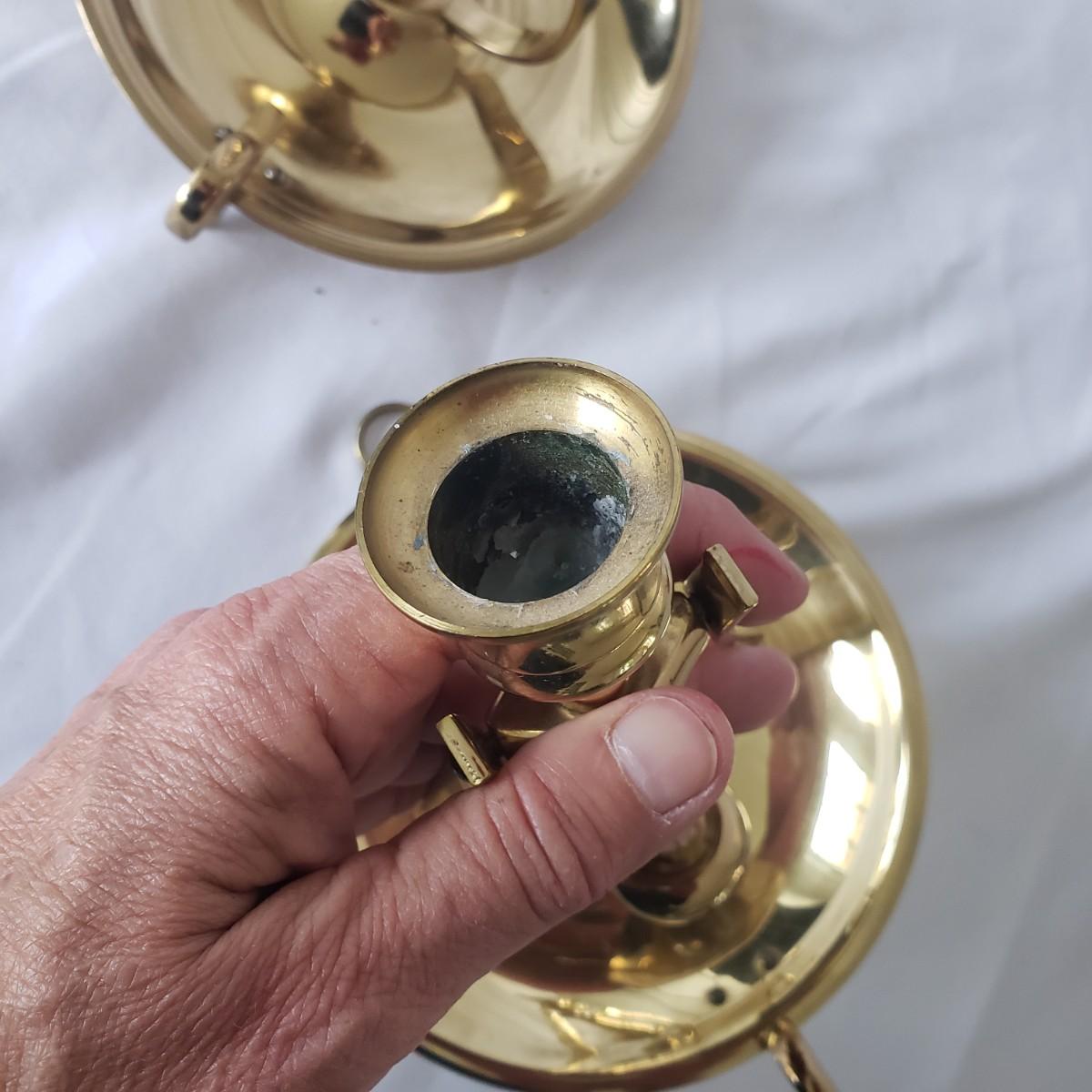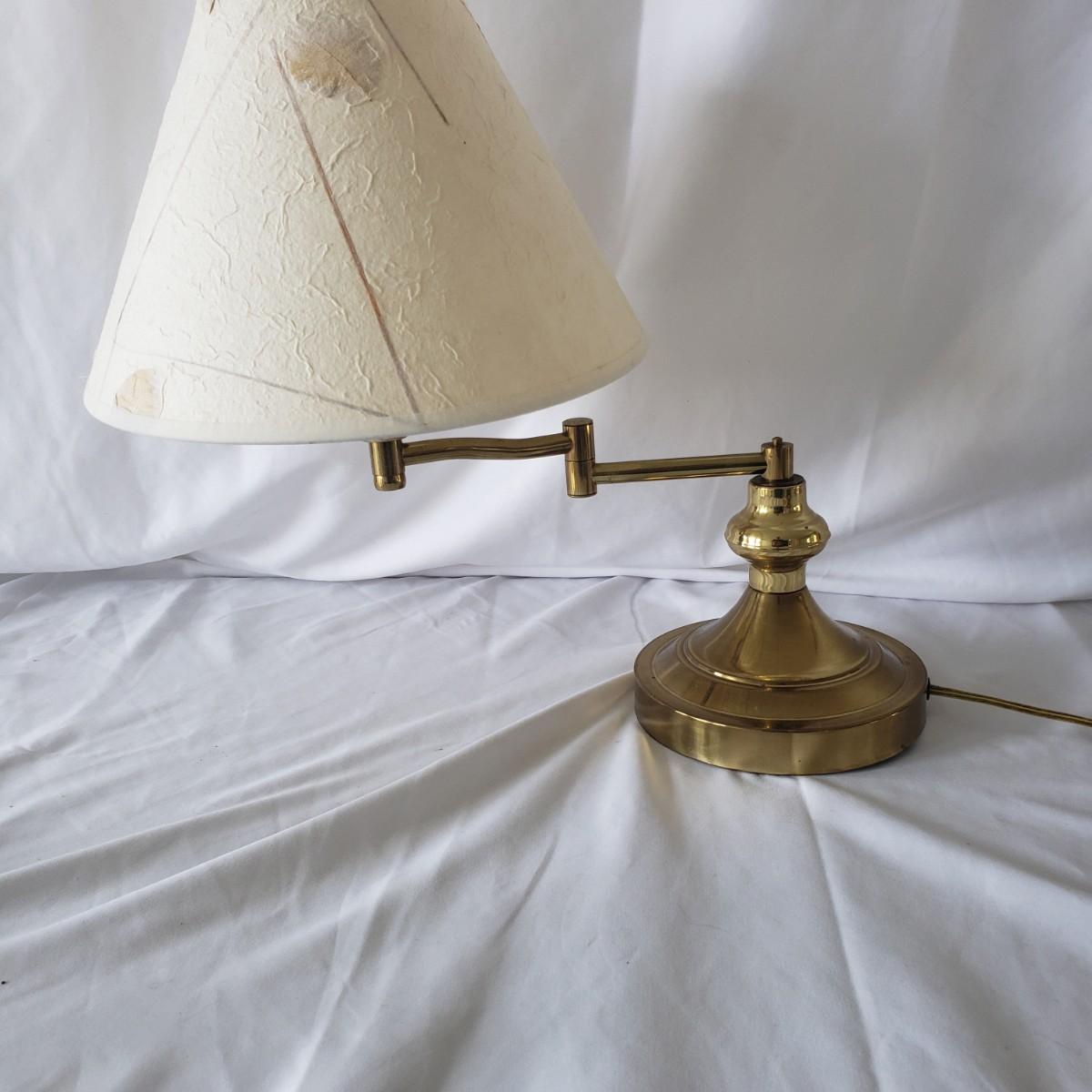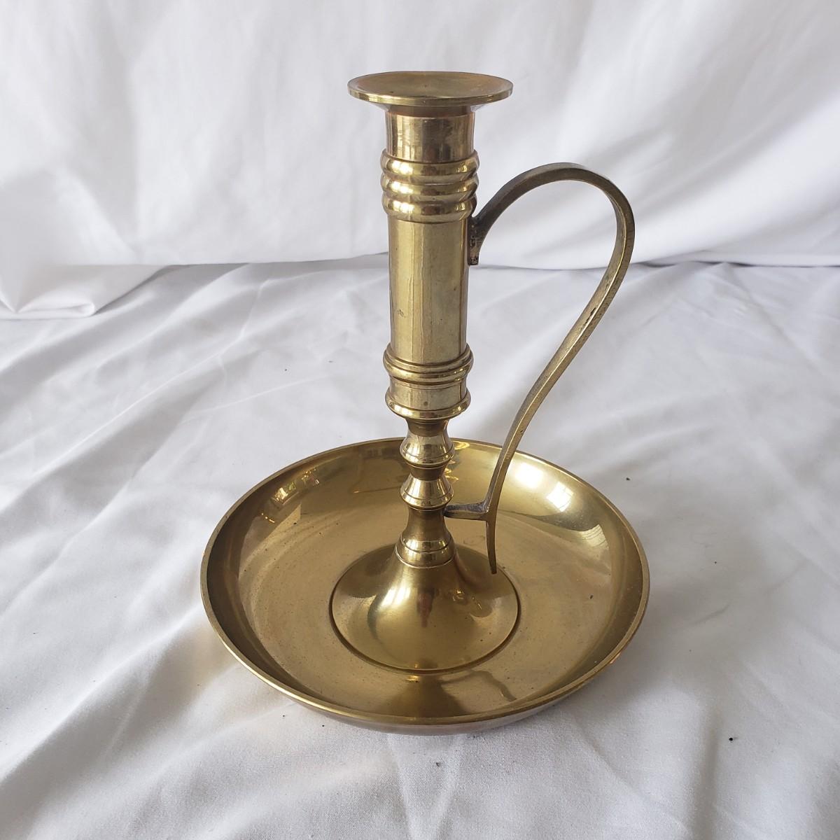 This brass collection features two matching Baldwin nautical gimbal candle holders or mount to the wall for sconces. The brass candle holder with a clear glass globe measures 5" x 11"H. The brass table lamp can extend out or in. The lamp powers on when plugged in.