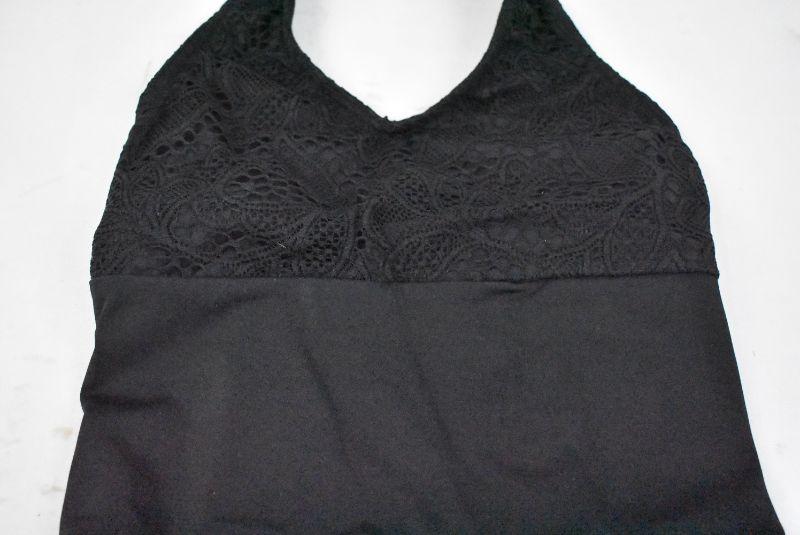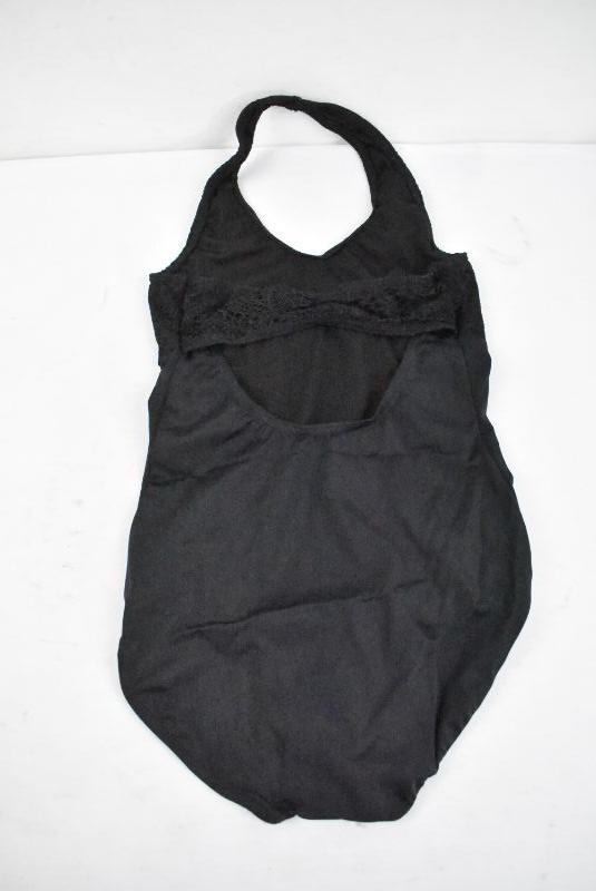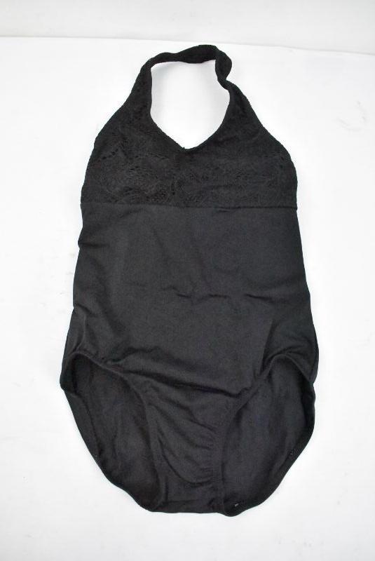 Balera Black Leotard, Halter Lace Neck & Cut Out on Back, Size Medium Child/MC
