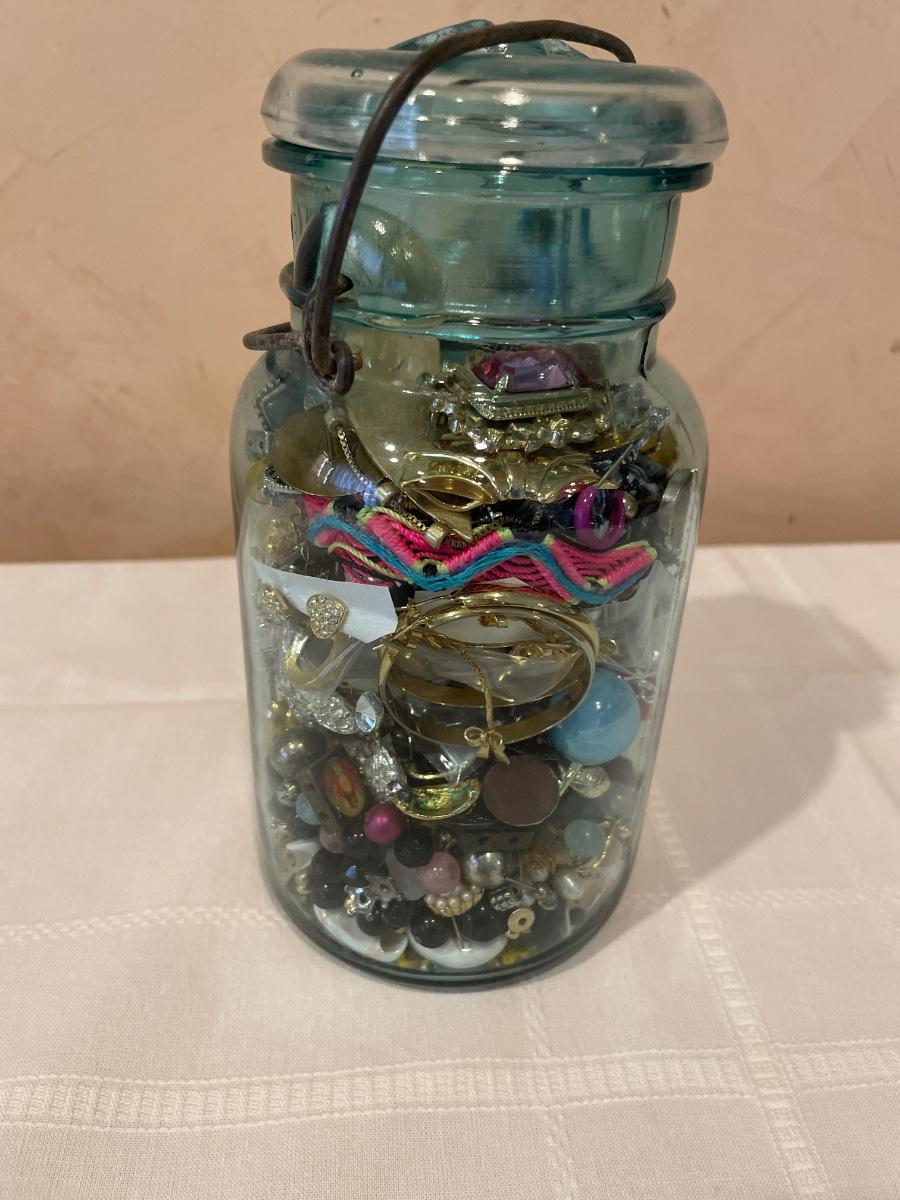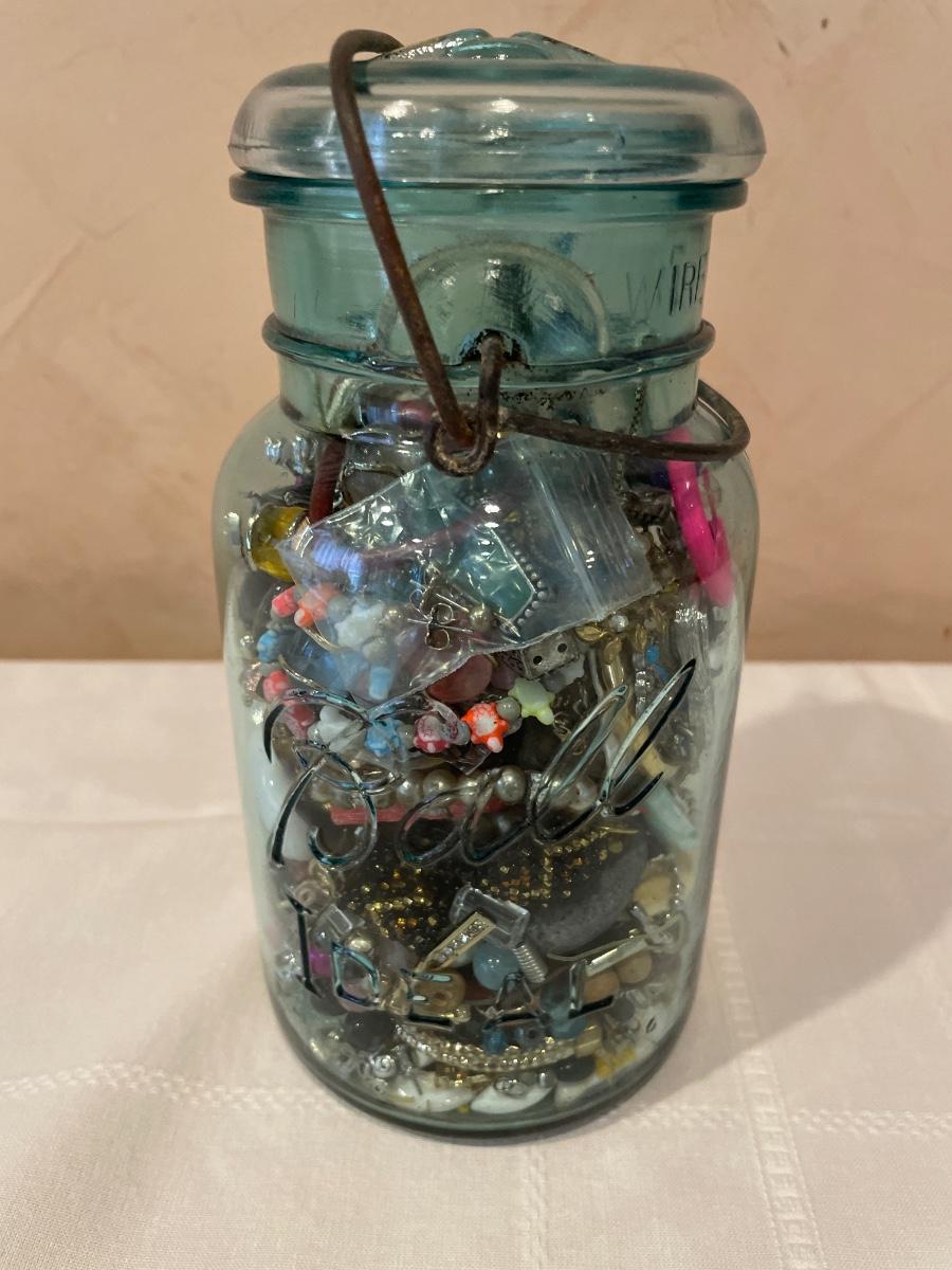 Ball canning jar filled with crafting jewelry