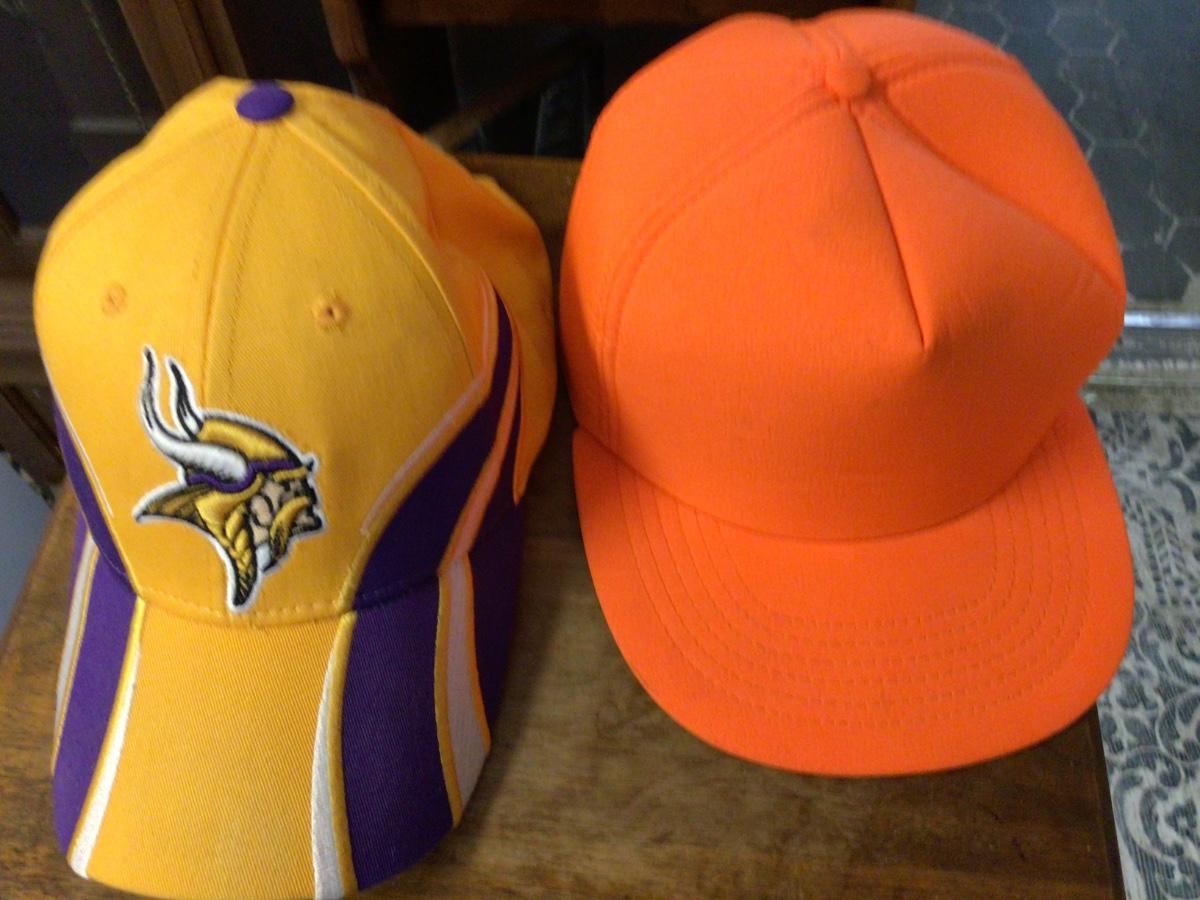 Two Viking hats, hunting cap, and Fort Benning GA Cap.