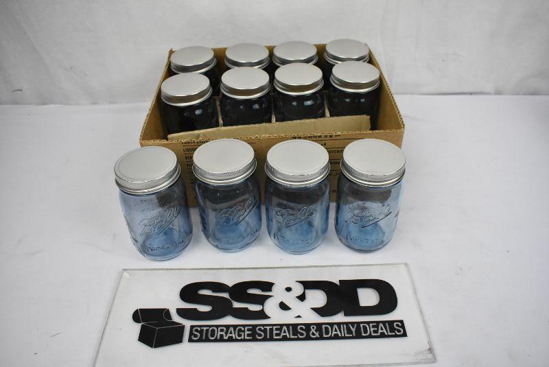 Ball Heritage Collection Blue Regular Mouth Pint 16-Oz. Glass Mason Jars, 12-Pack. Open Package - New