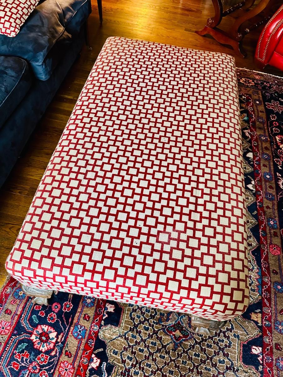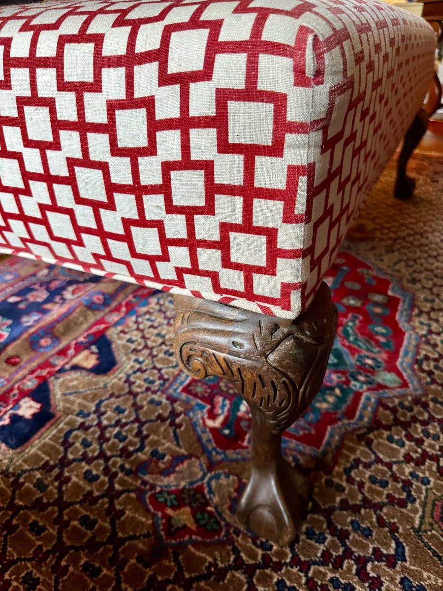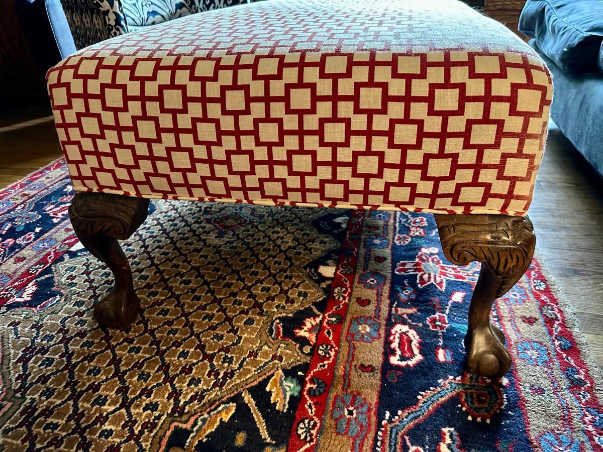 BALL IN CLAW FOOT UPHOLSTERED OTTOMAN