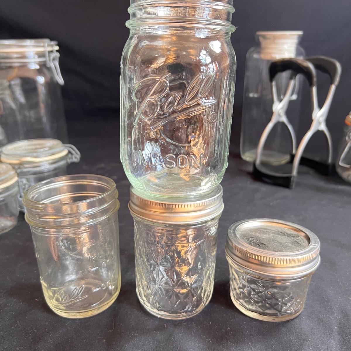 A good assortment of jars includes Ball, Kerr and more. See pics for full inventory.