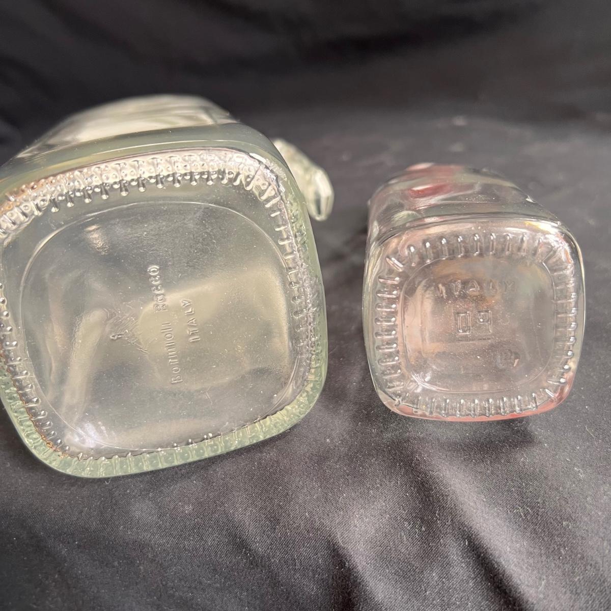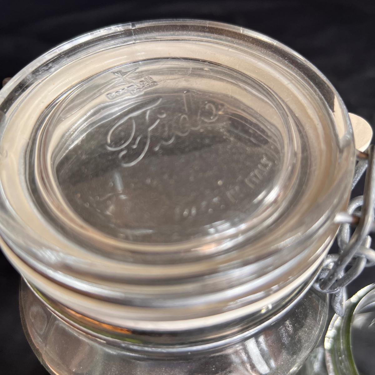 Jar with white plastic top measures 3” x 3” x 9”H.