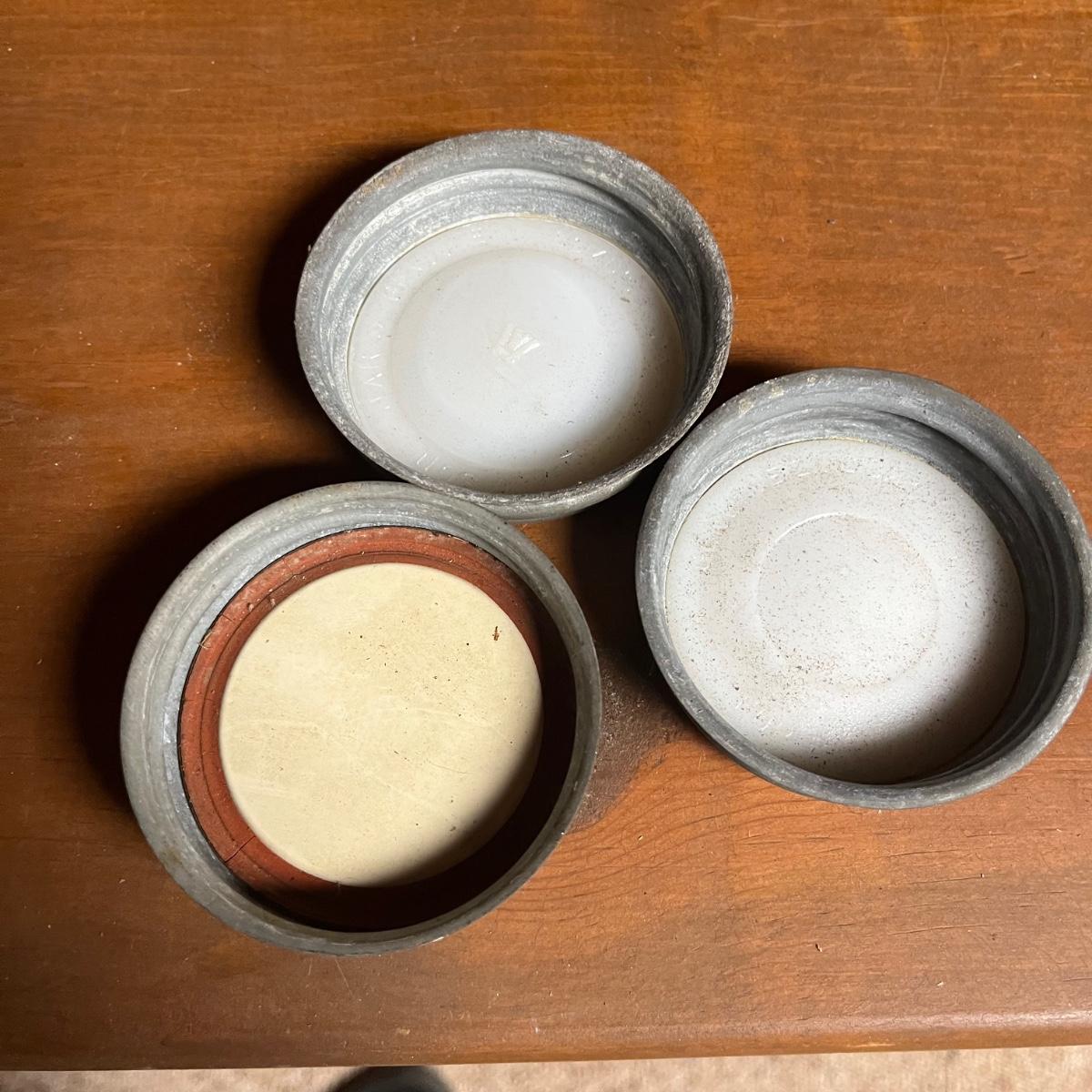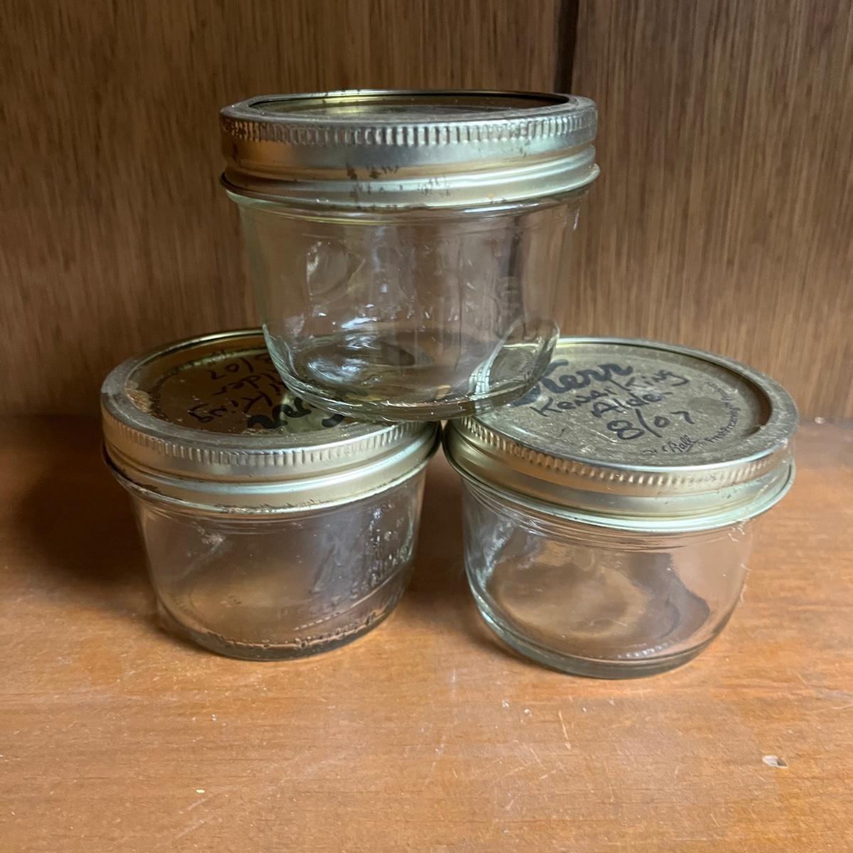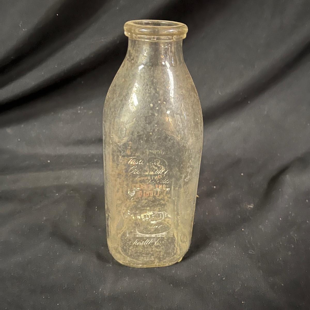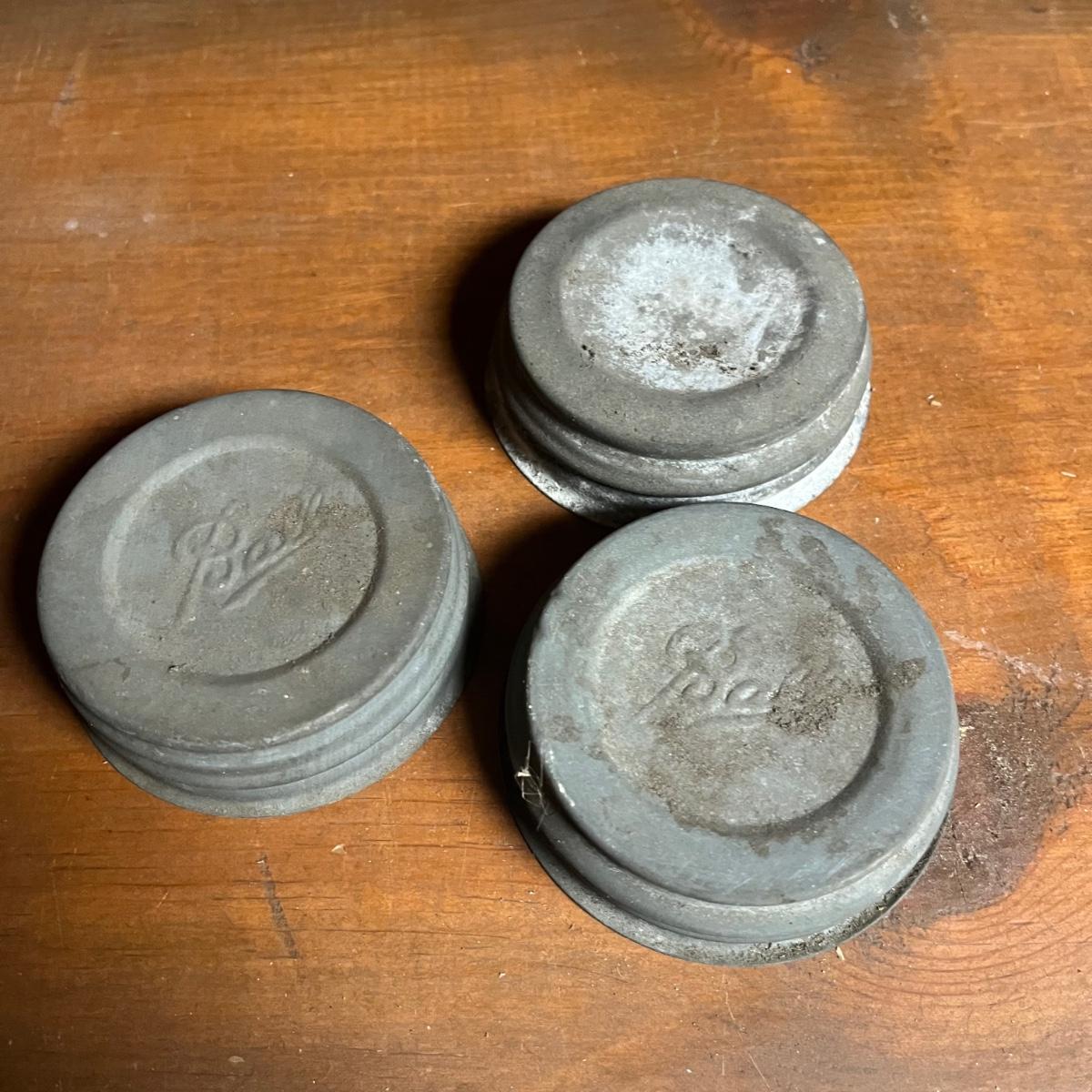Lot includes a Ball pitcher, Atlas glass top canning jar, Pet milk bottle unmarked milk bottle, three Kerr canning jars and three zinc tops. Ball pitcher measures 4.5” x 5.5” x 9”.
