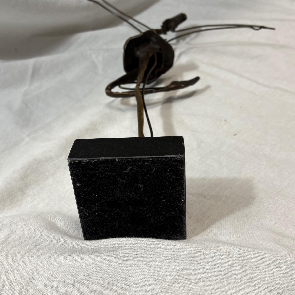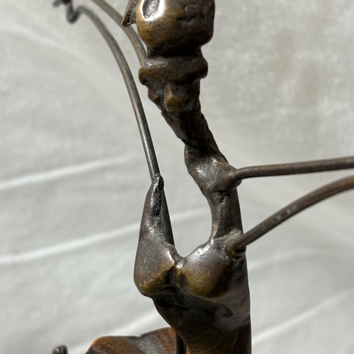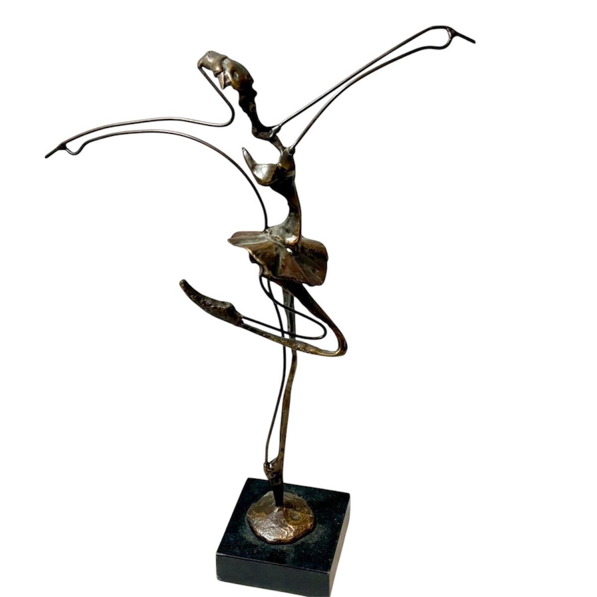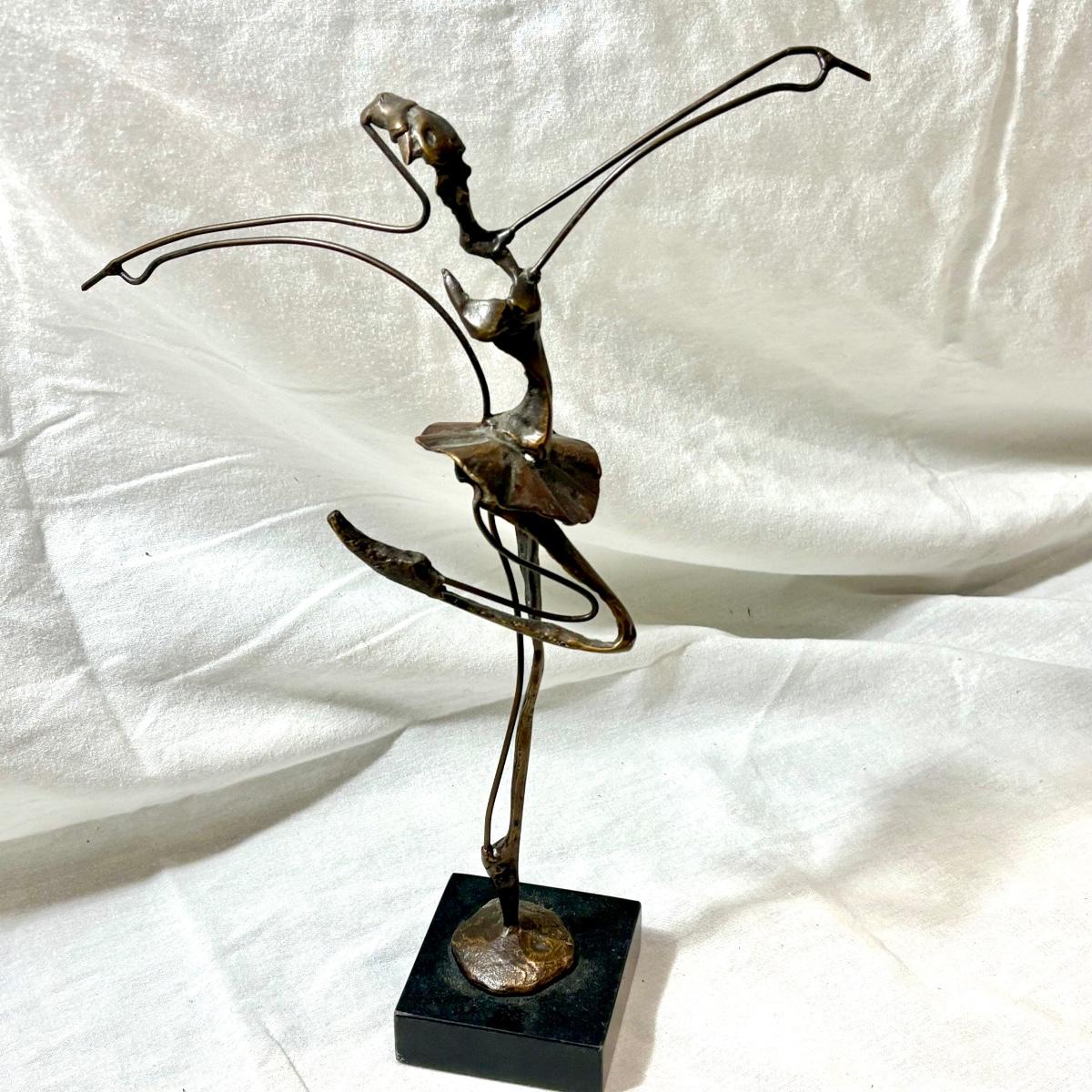 Whimsical dancer is 3.25” x 3.15” at marble base, 14”H arms have 11” span. Material appears to be bronze.