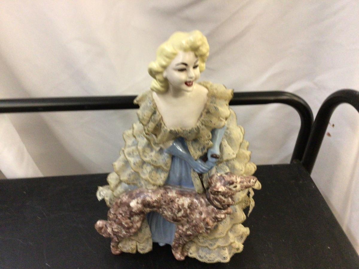 Ballerina Music Boxes and Large Plaster Dog and Lady Figurine