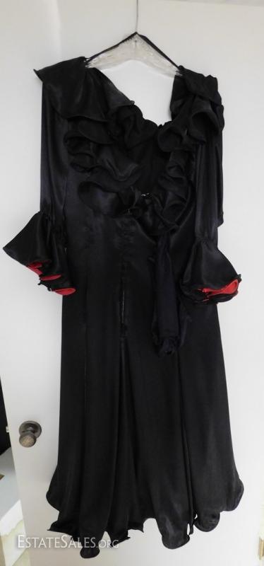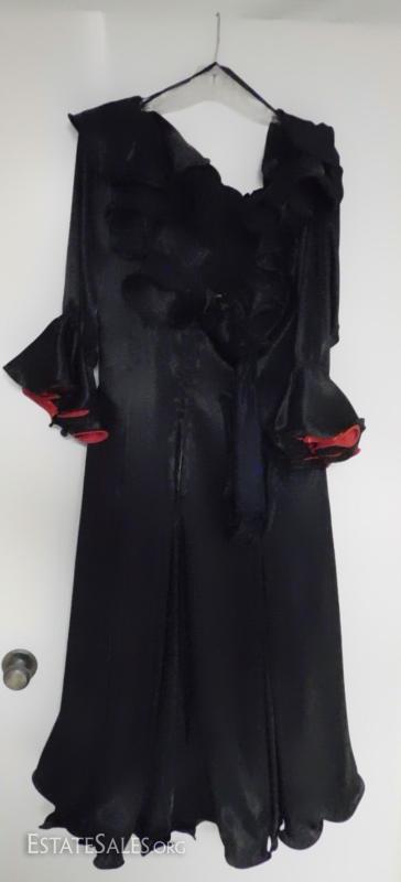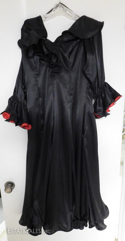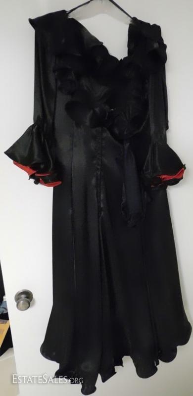 Bolero Black ballroom gown with red accent. Zipper back. Size 12-14