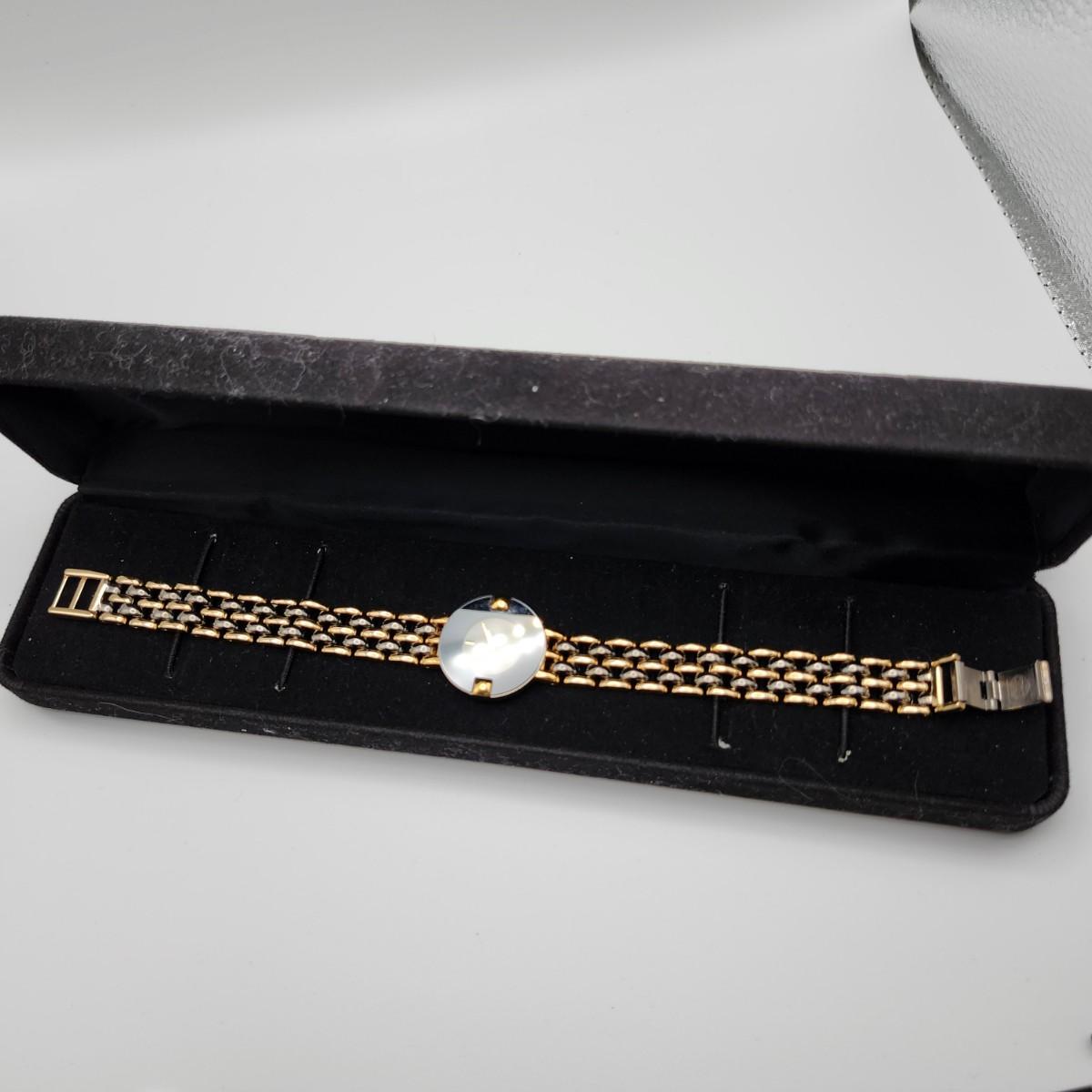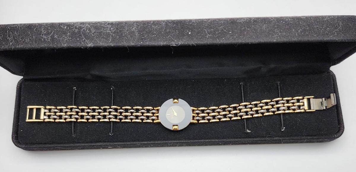 Bulova ladies black dial 2-tone stainless steel watch. Quartz movement, new battery.