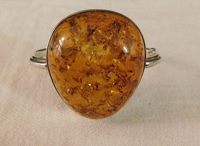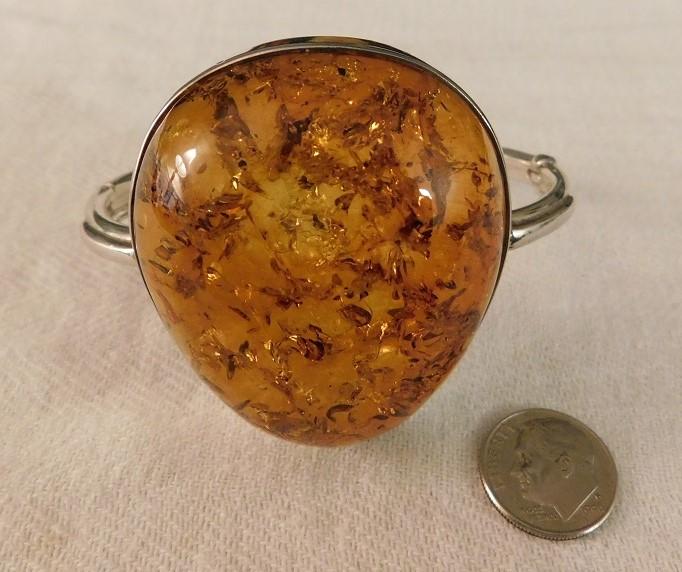 Baltic Honey Amber Bangle Sterling Silver. Hinge closure with safety latch. Absolutely stunning with rich color. Heavy piece and a rare collector specimen of amber. This item has a reserve.