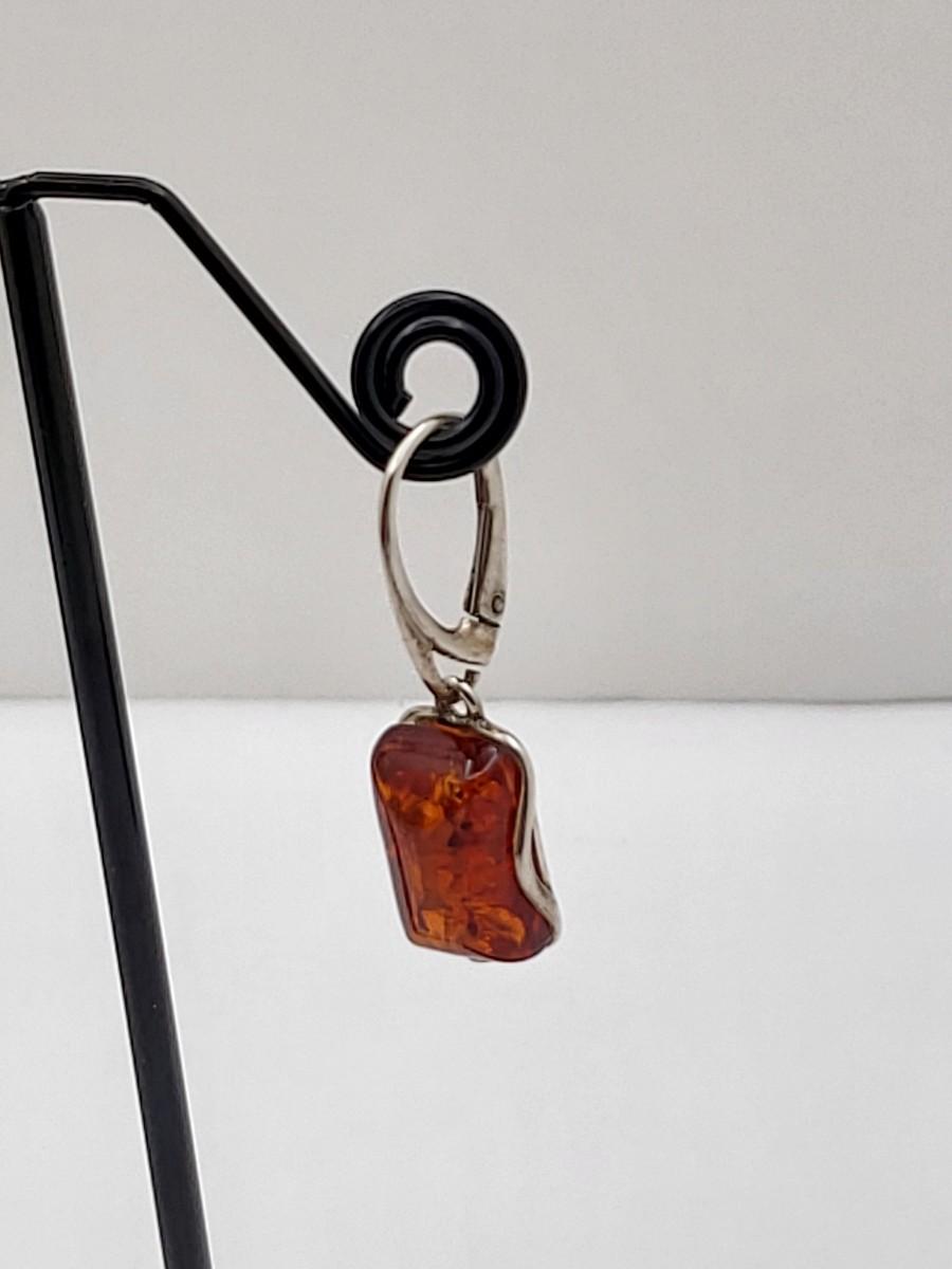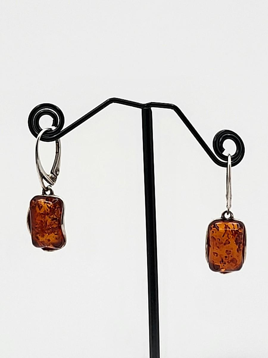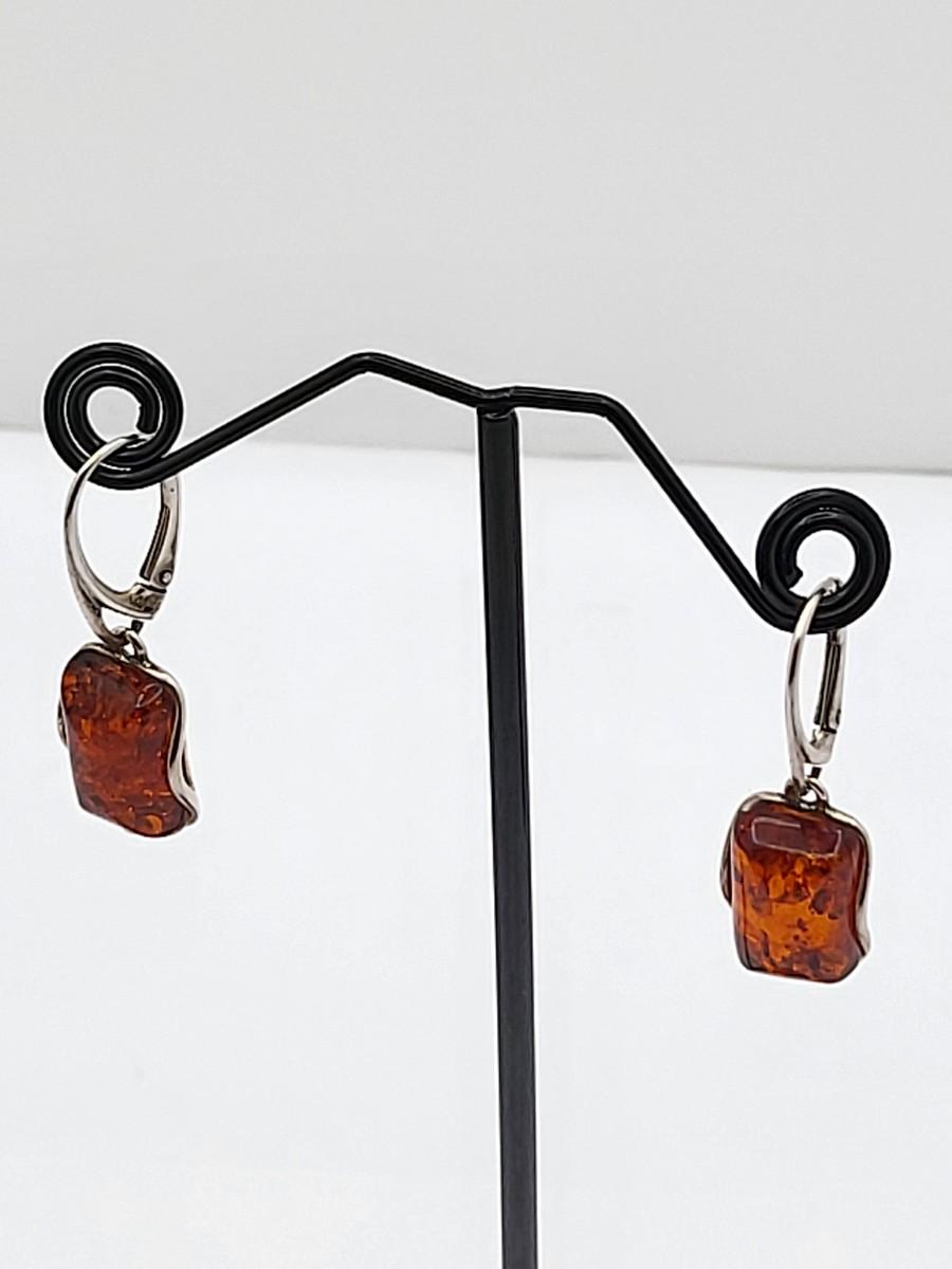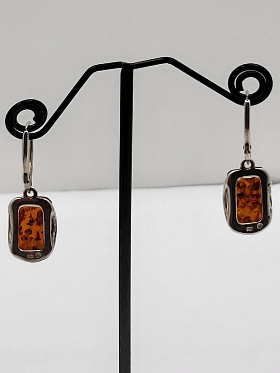 Lovely genuine amber earrings. Lever back, pierced. Amber dangles measure just under .75" long. Stamped 925. Weigh 4.6 grams.