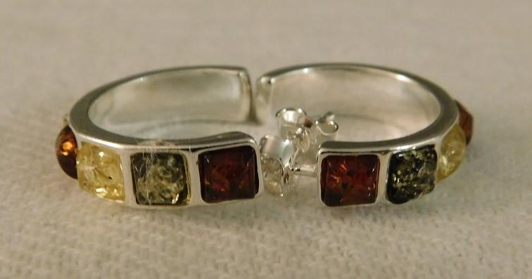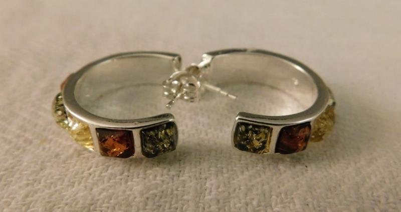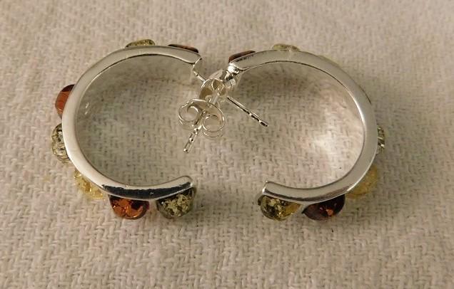Baltic Amber Multi-Color J-Hoop Earrings Platinum Over Sterling