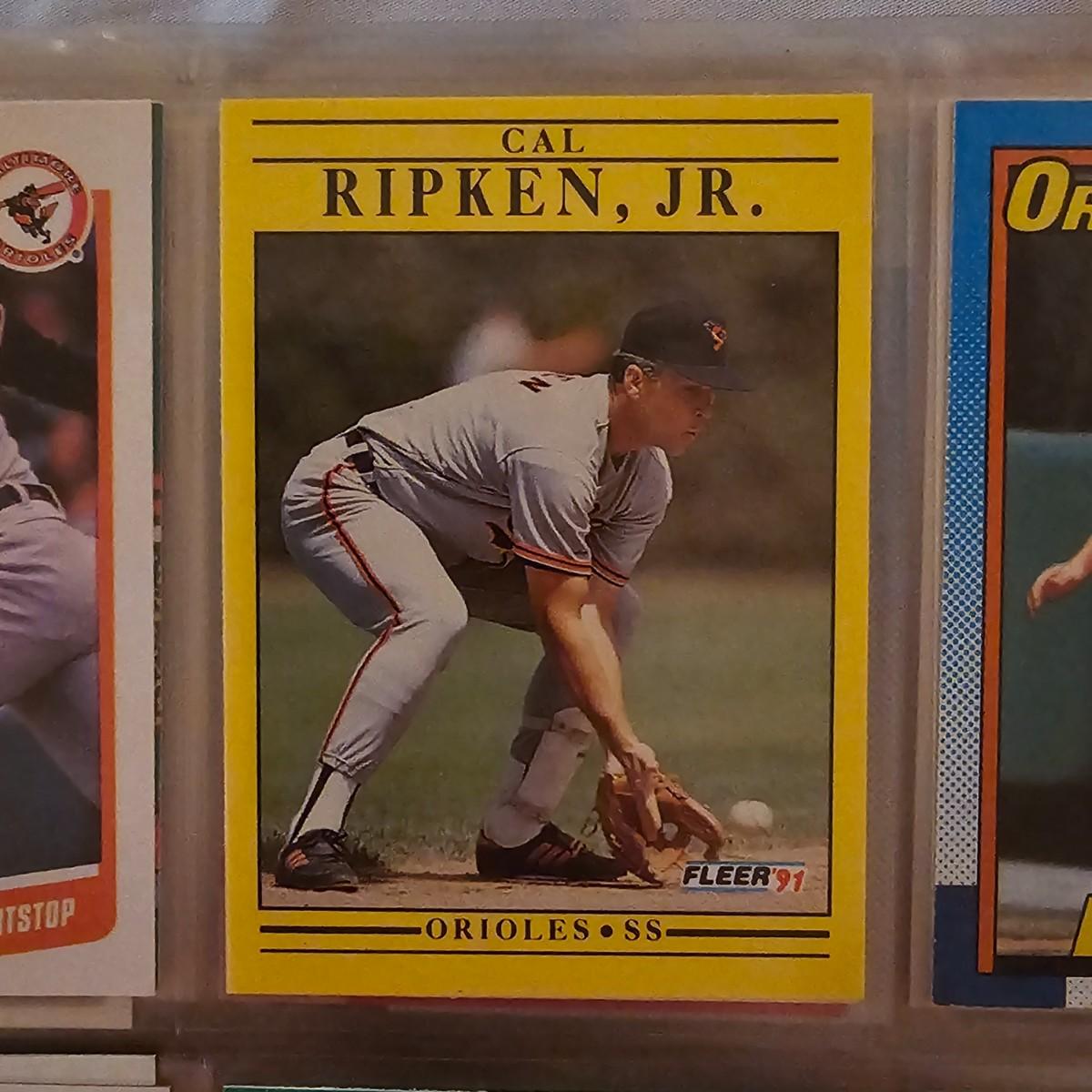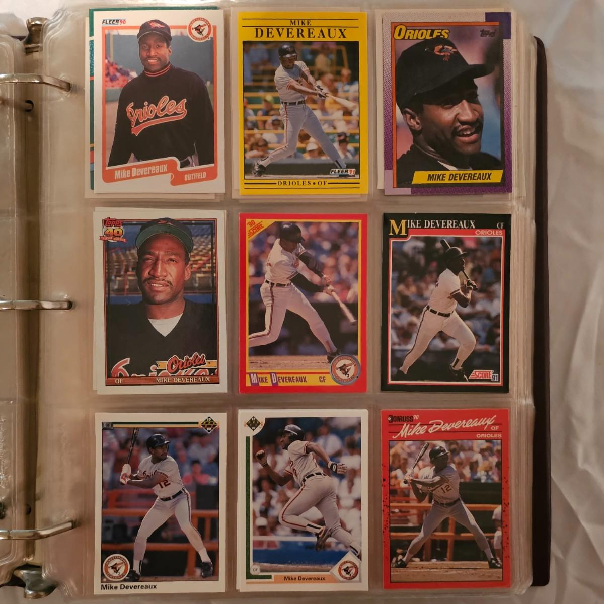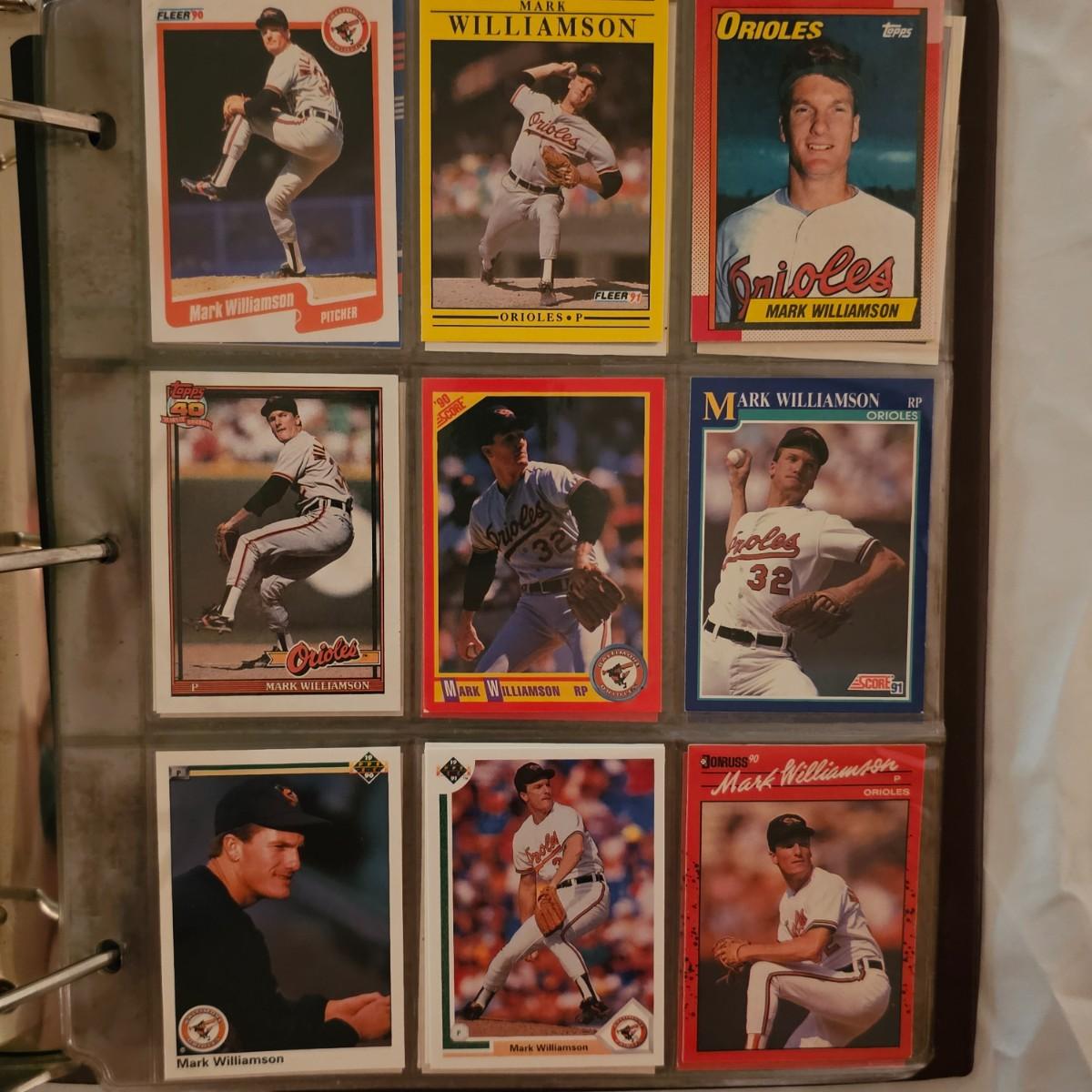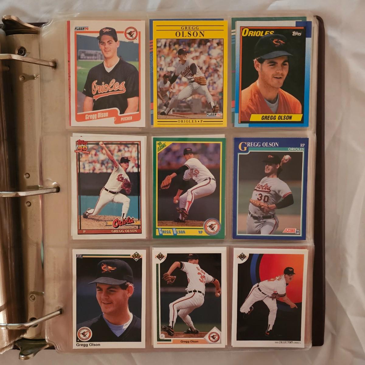 Baltimore Orioles baseball players from 1990 and 1991. Cards are by several producers, Topps, Fleer, Upper Deck and more. No guarantee of complete sets. Hardcover binder has standard nine pocket sleeves for display. Cards are one per pocket, are not graded or appraised. See photos for details. Shipping available. All sales are final. No returns or refunds. Please bid accordingly.