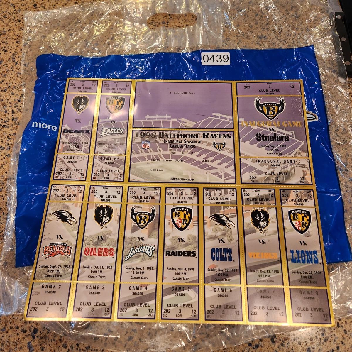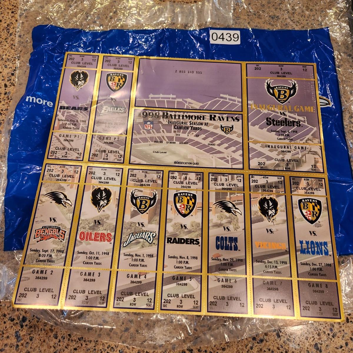 Baltimore Ravens 1998 Inaugural Season Tickets Home Games