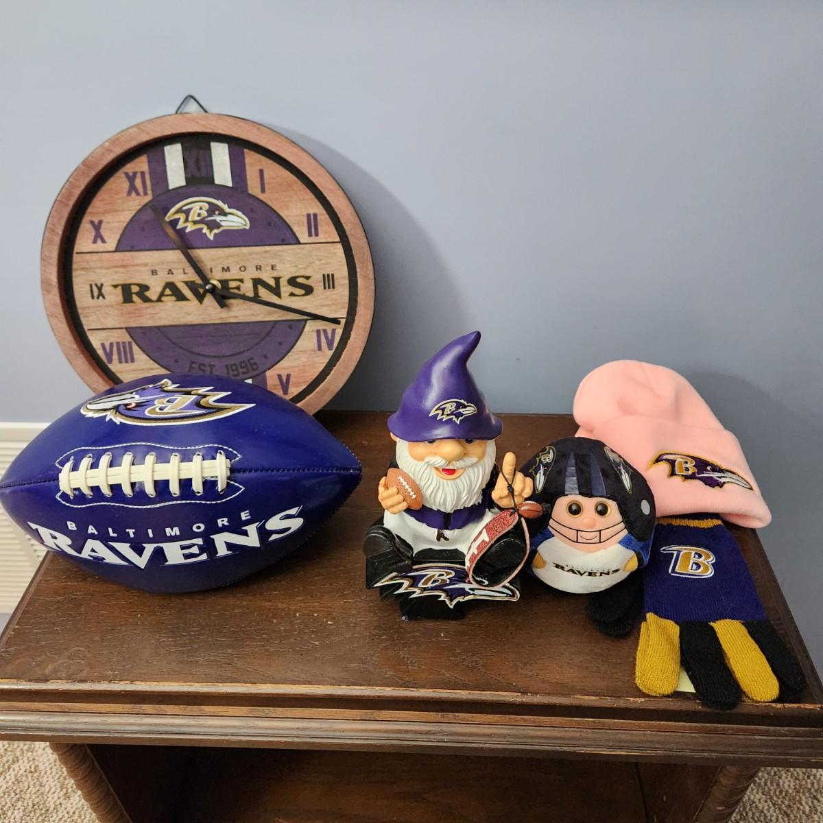 Baltimore Ravens Memorabilia Clock ,Garden Gnome Hat Gloves