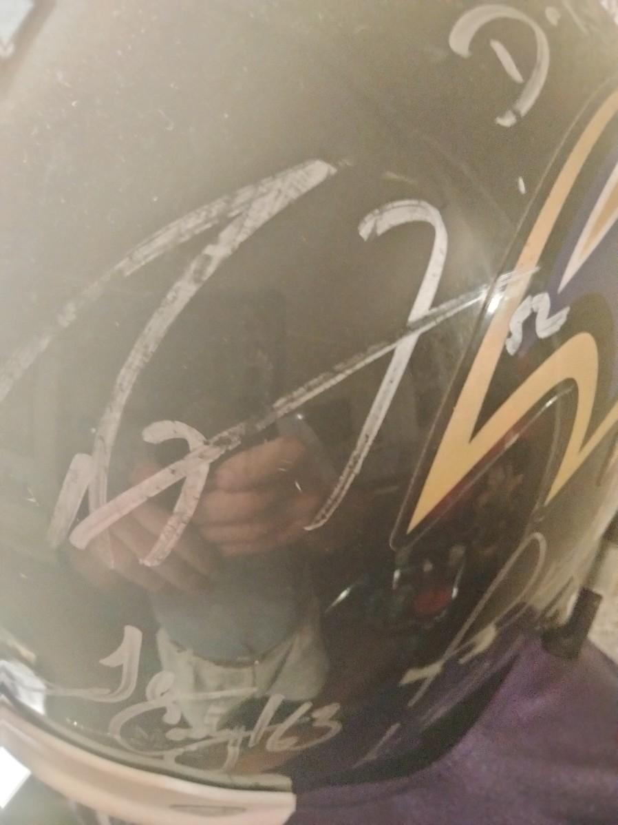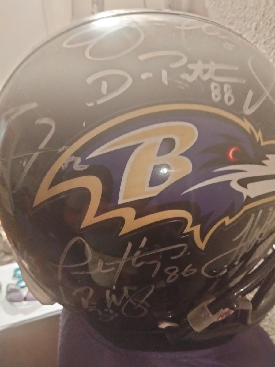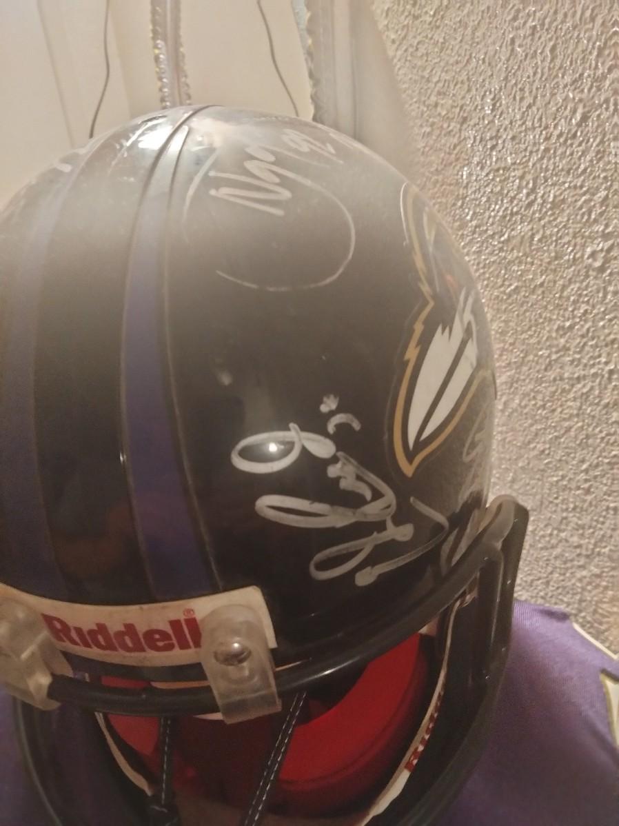 Autographed by 14 Ravens Ray Lewis,Joe Flacco,Terrell Suggs and 9 others this helmet is from the Super Bowl Ravens team