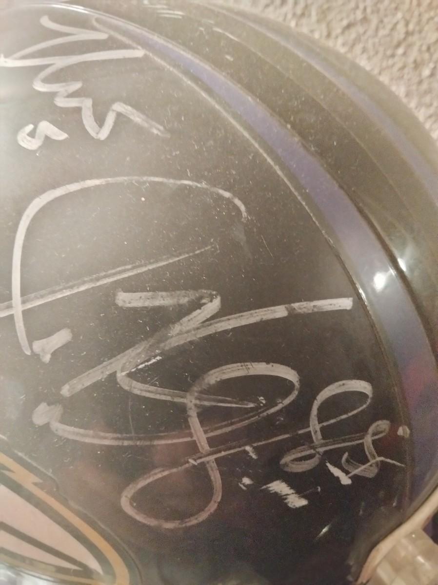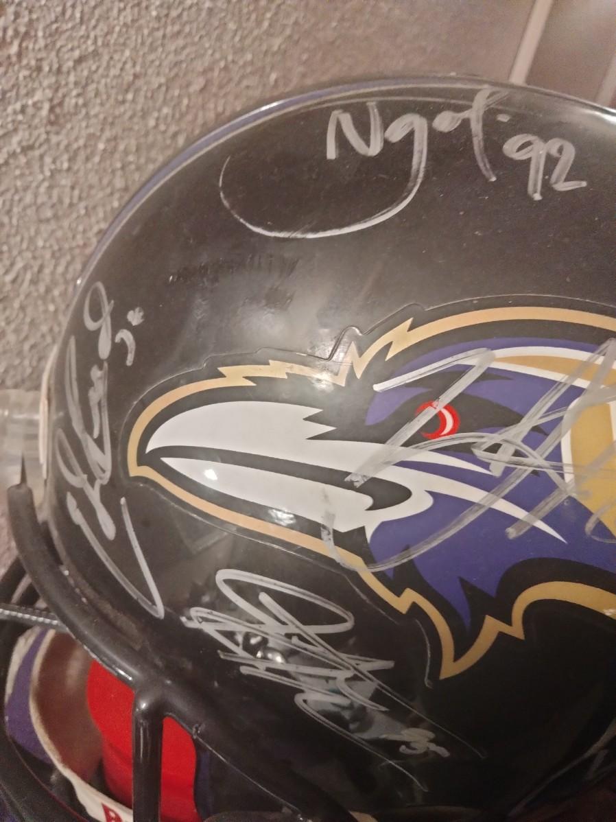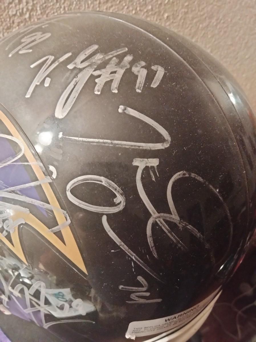 Autographed by 14 Ravens Ray Lewis,Joe Flacco,Terrell Suggs and 9 others this helmet is from the Super Bowl Ravens team