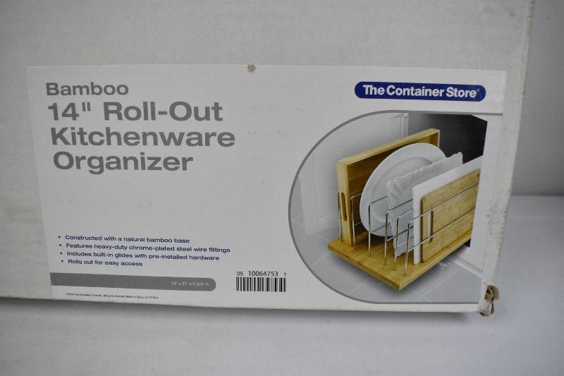 Bamboo 14" Roll-Out Kitchenware Organizer 14" x 21" x 9.75" - New