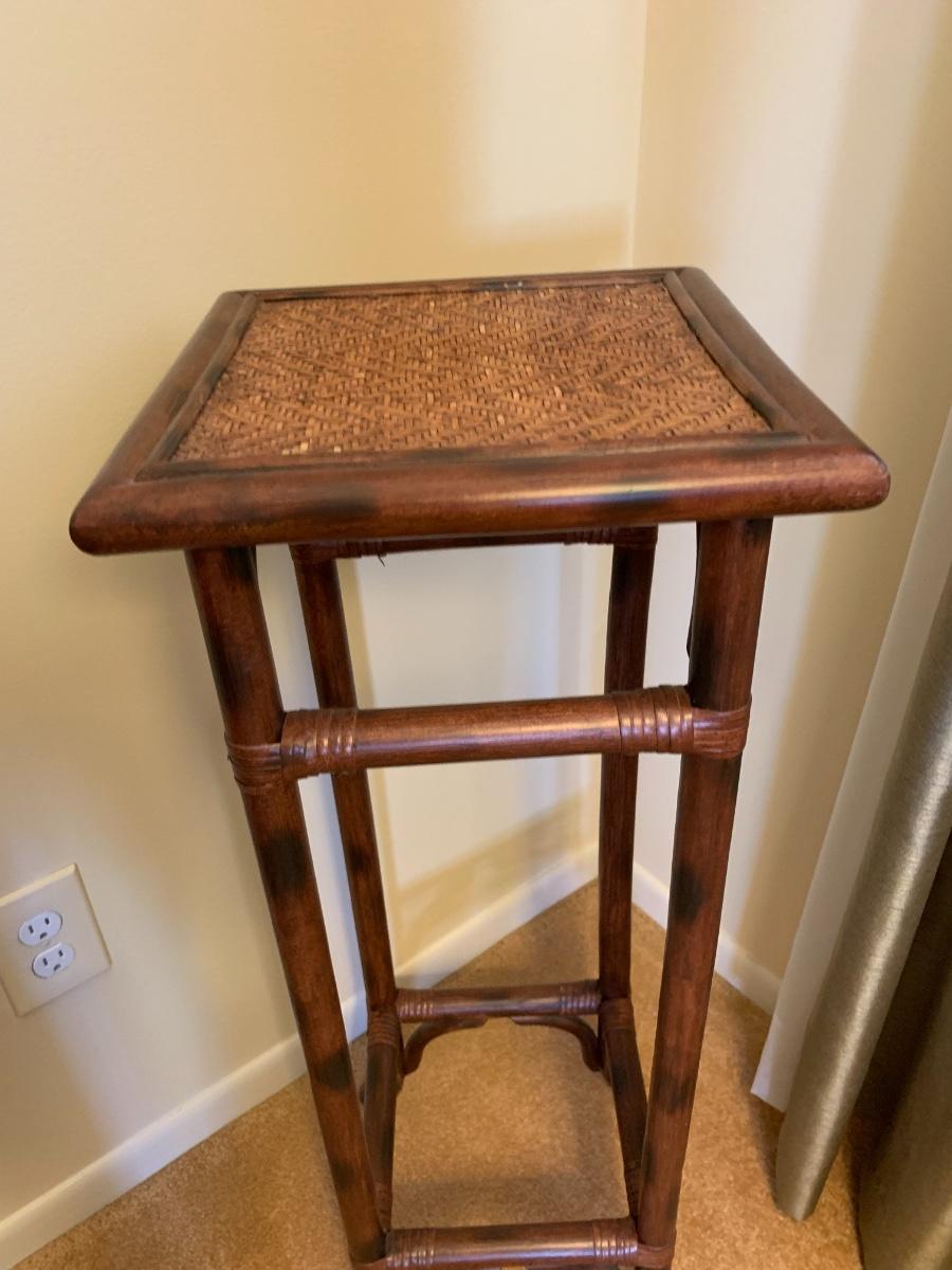 Vintage Bombay Company bamboo and rattan top plant stand. In excellent condition