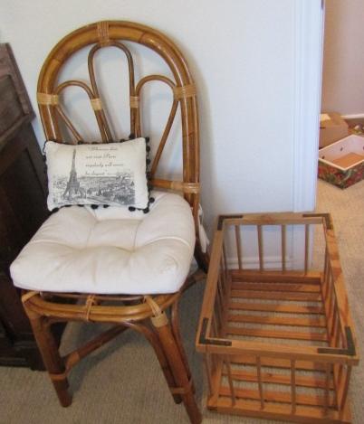 LOT 130  BAMBOO CHAIR AND WOODEN CRATE