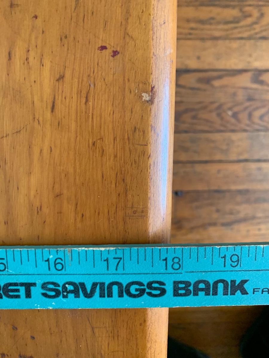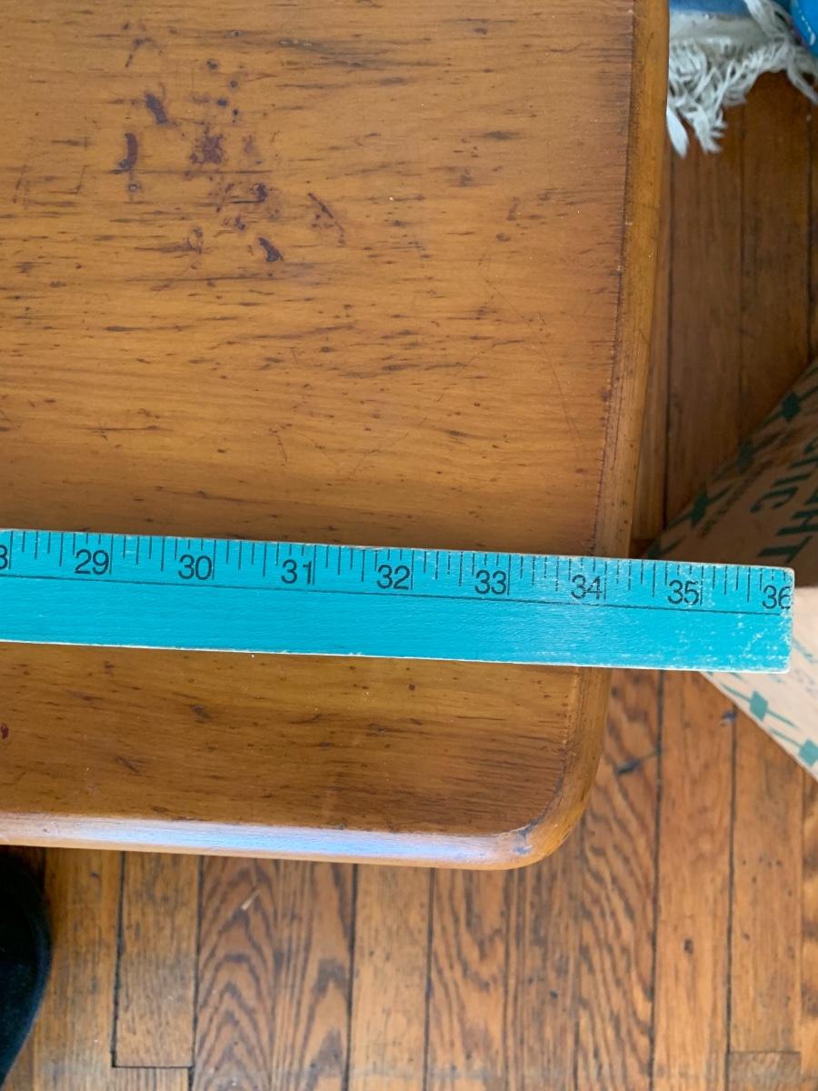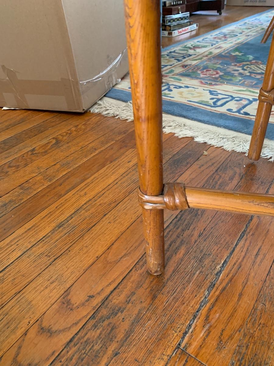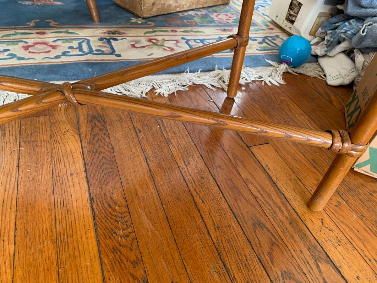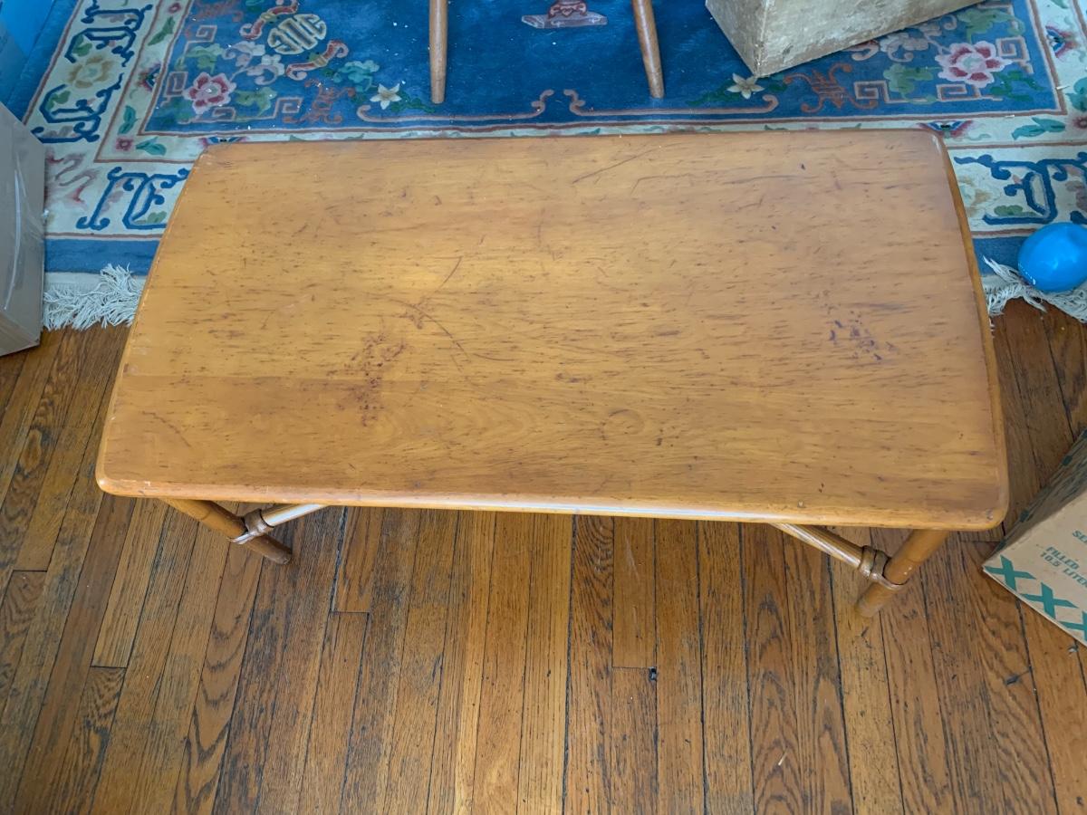 Bamboo base coffee table with solid ash top. Could use some refinishing but solid piece.