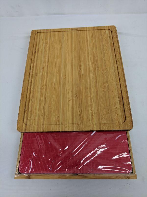 Bamboo Cutting/Storage Board with Colored Chopping Mats - Broken Corner
