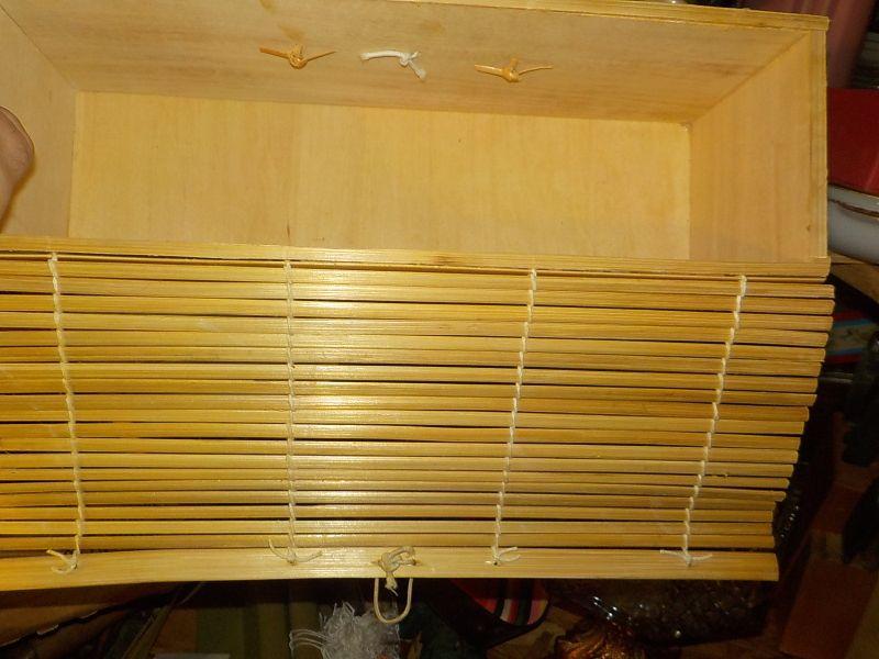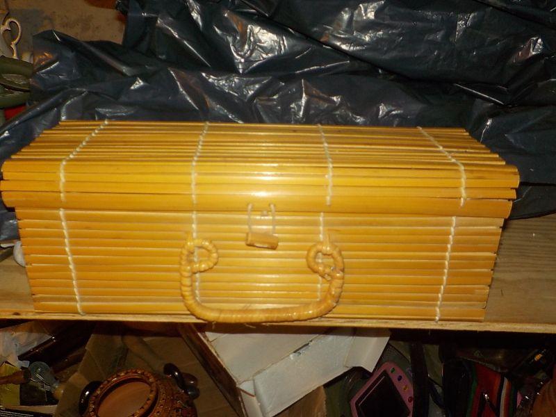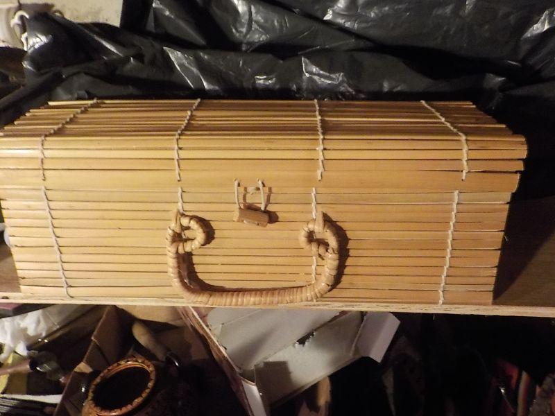 Sz. 14 in.x 5 x 5 in. bamboo carry case, super clean appears min or no usage.
