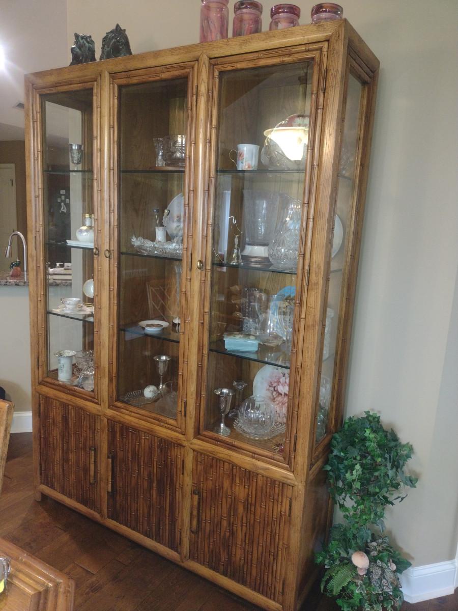 Bamboo Design Lighted China Cabinet- Approx 57" x 16" x 81" Tall (No Contents Included)