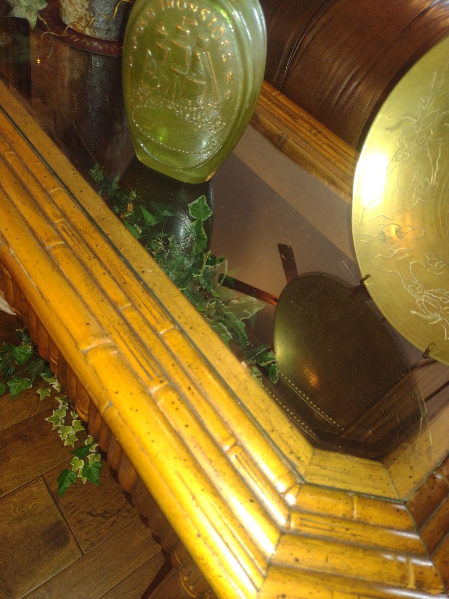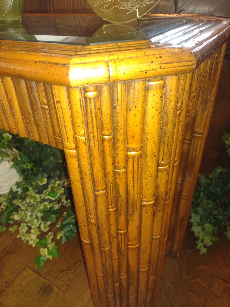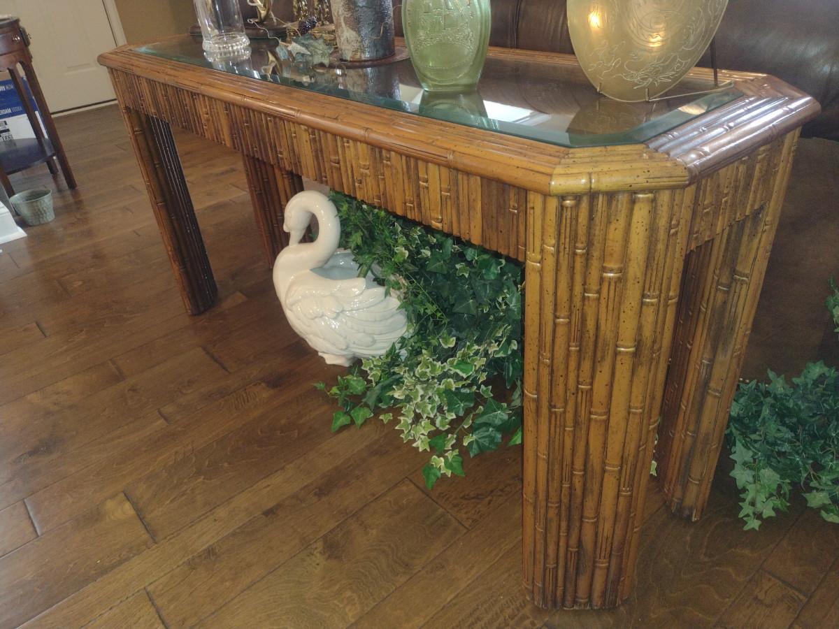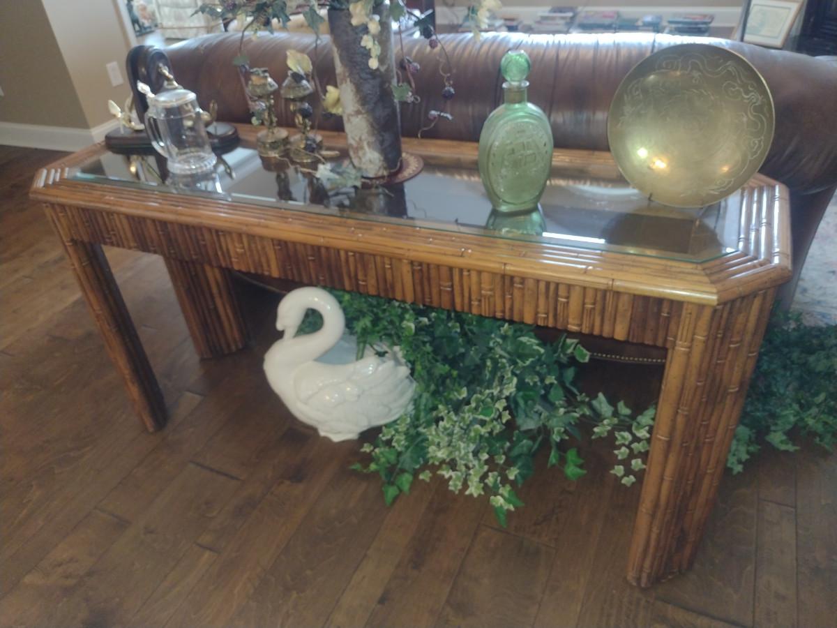 Bamboo Design Sofa Table with Beveled Glass Top- Approx 59 3/4" x 18 3/4" x 29" Tall (No Contents Included)