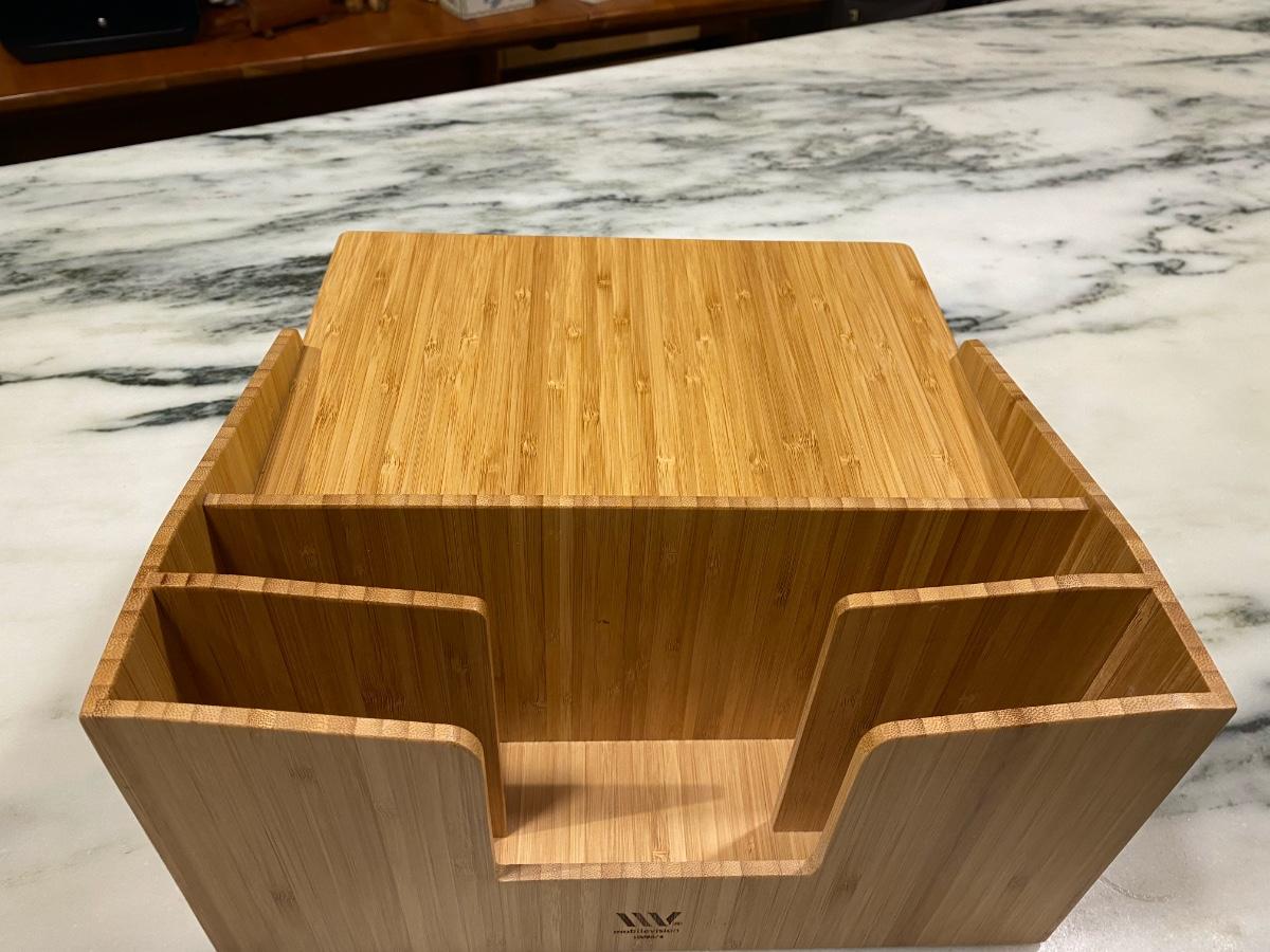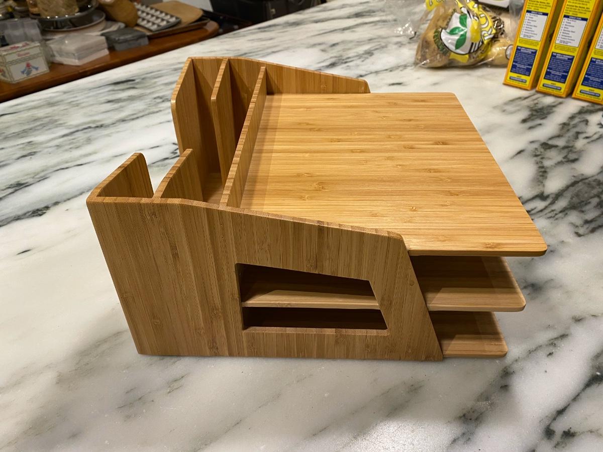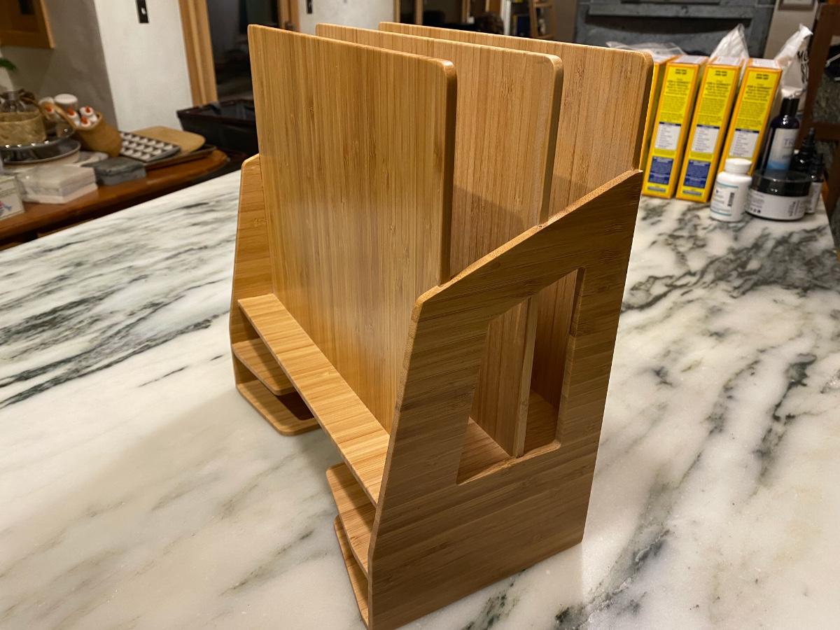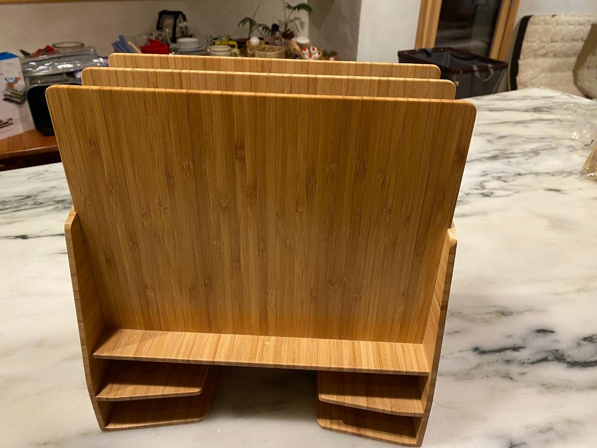 Like new desktop organizer made of beautiful bamboo. Can be positioned horizontally or vertically.