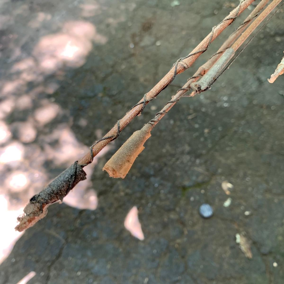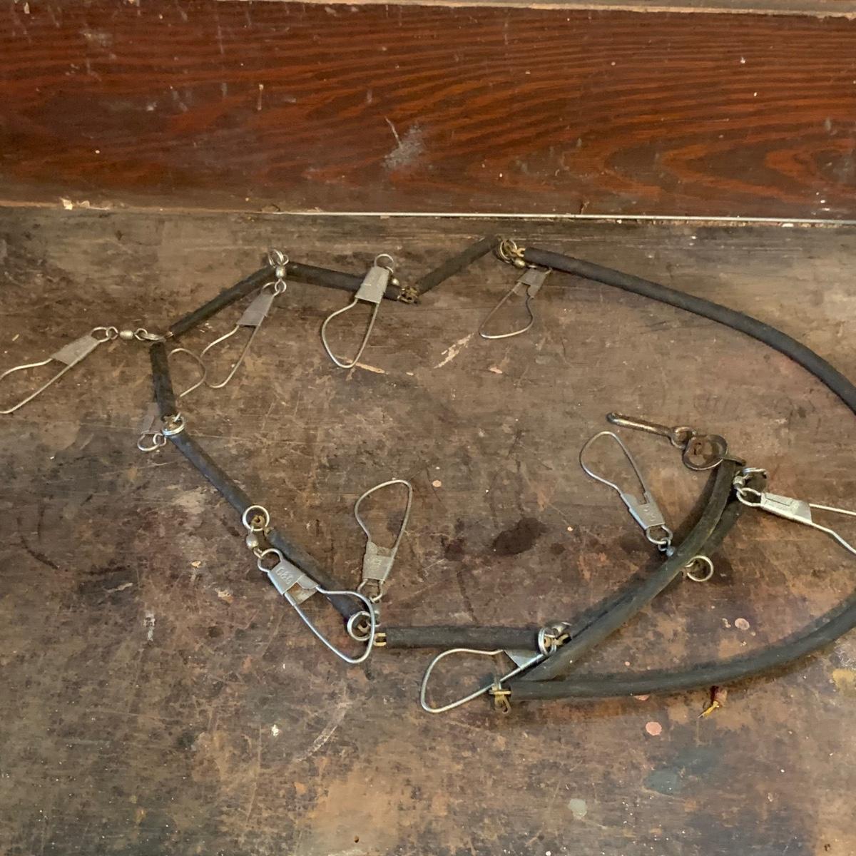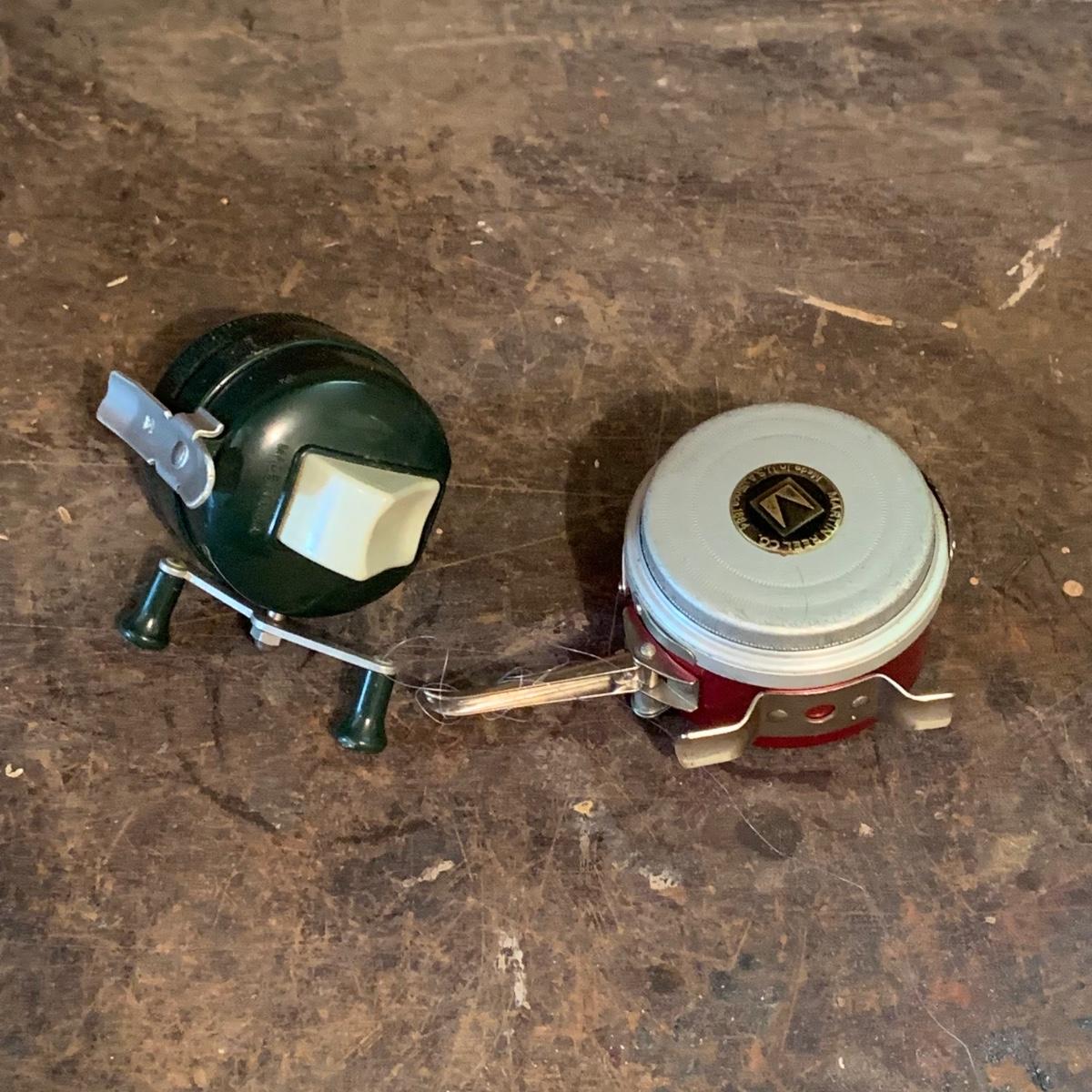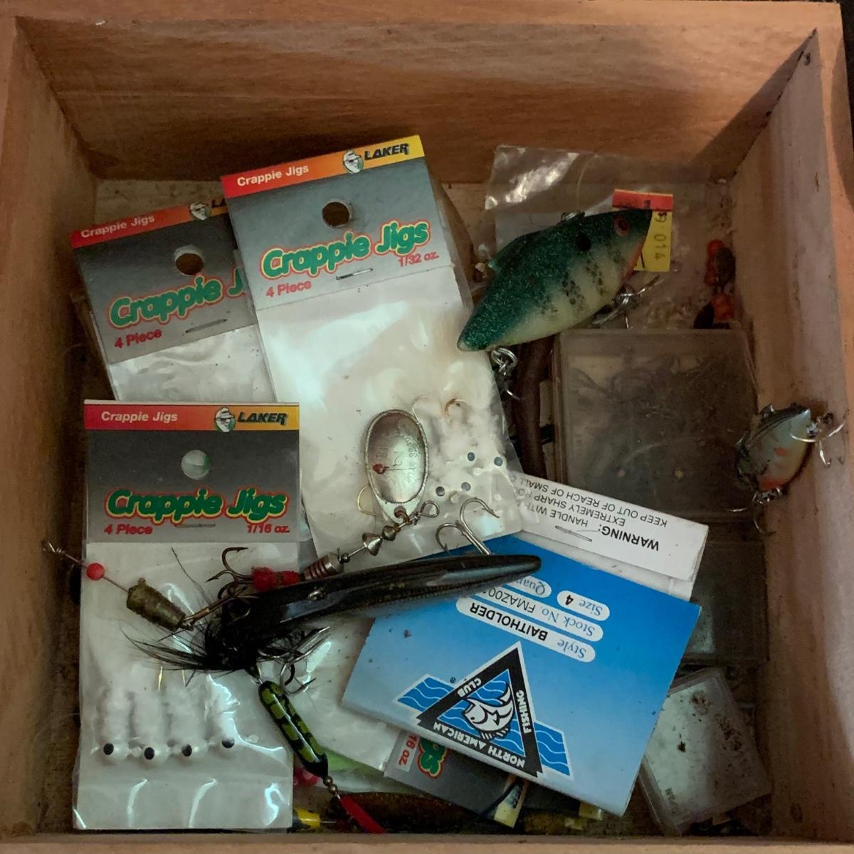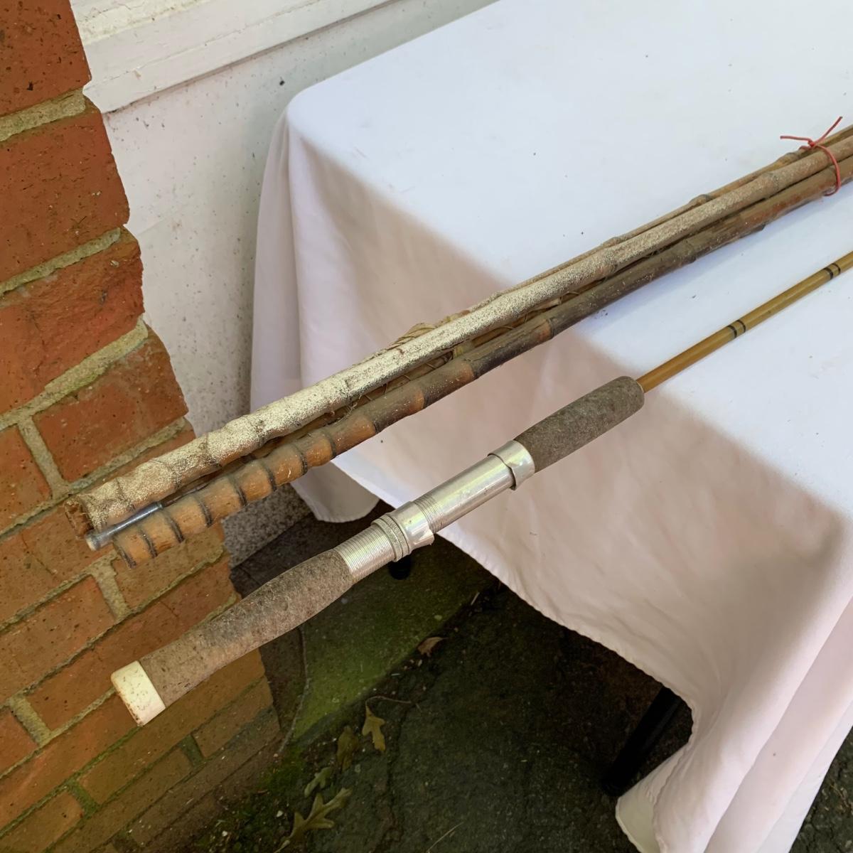 Six fishing poles, five of which are unique bamboo rods. The long fishing poles are about 9.5 ft. long. There are also two reels, many rolls of fishing line, a tackle box, and more. Local pickup only.