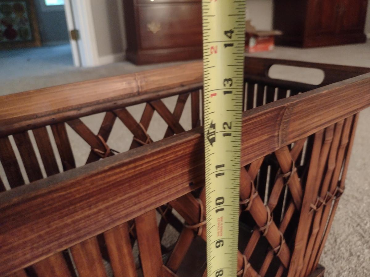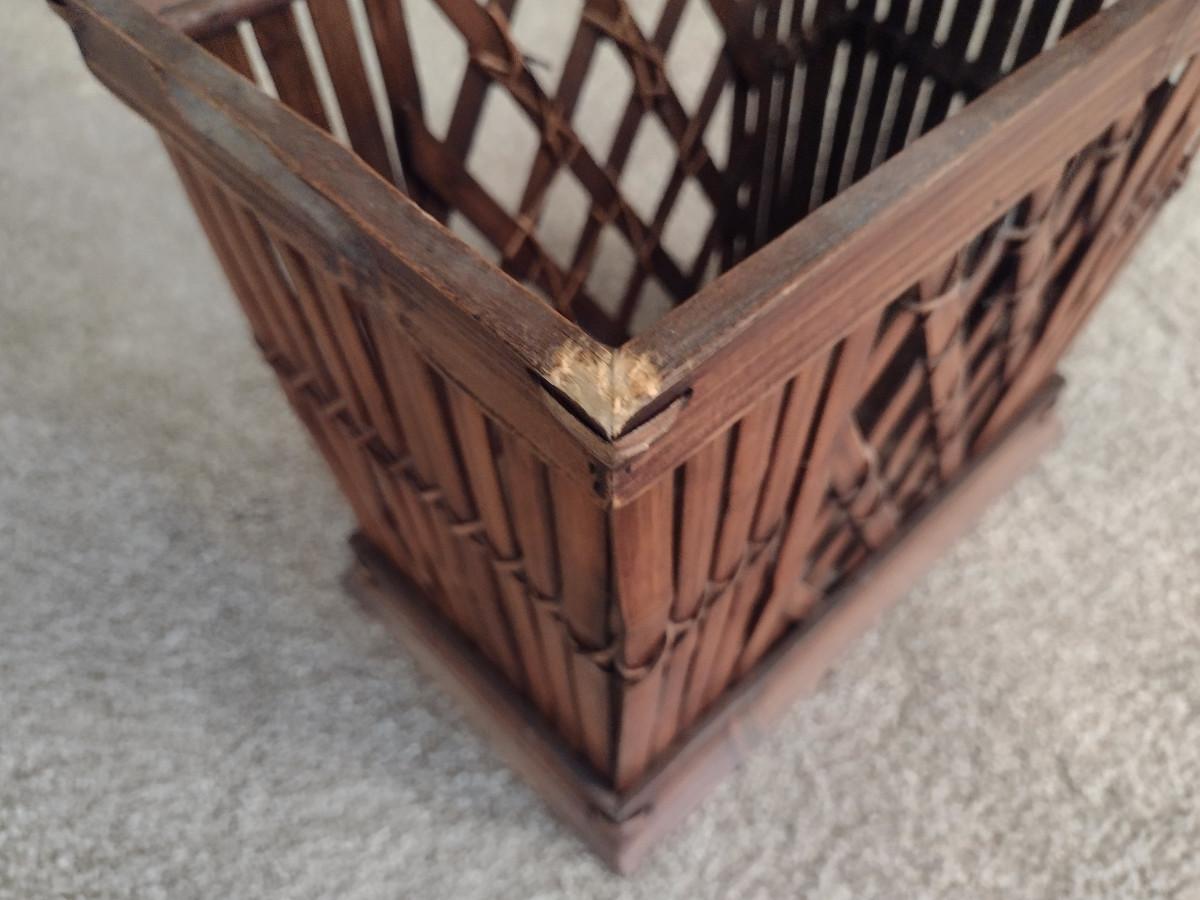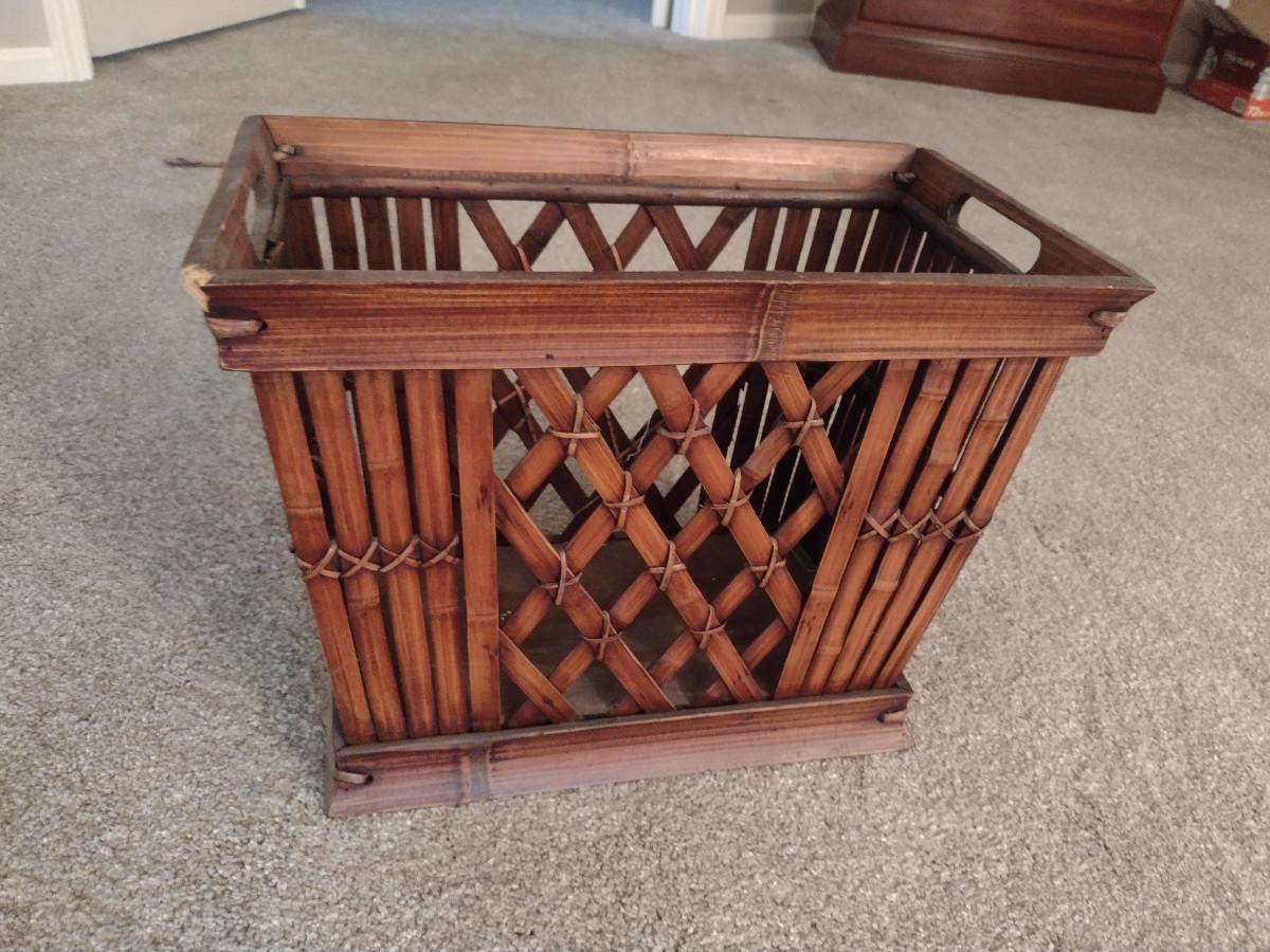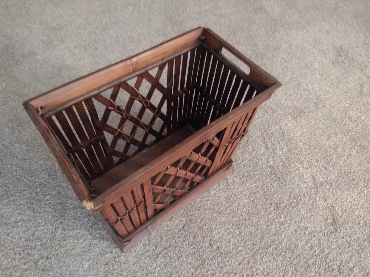 Bamboo Magazine Rack. Item has damage to one corner- please see all pictures.