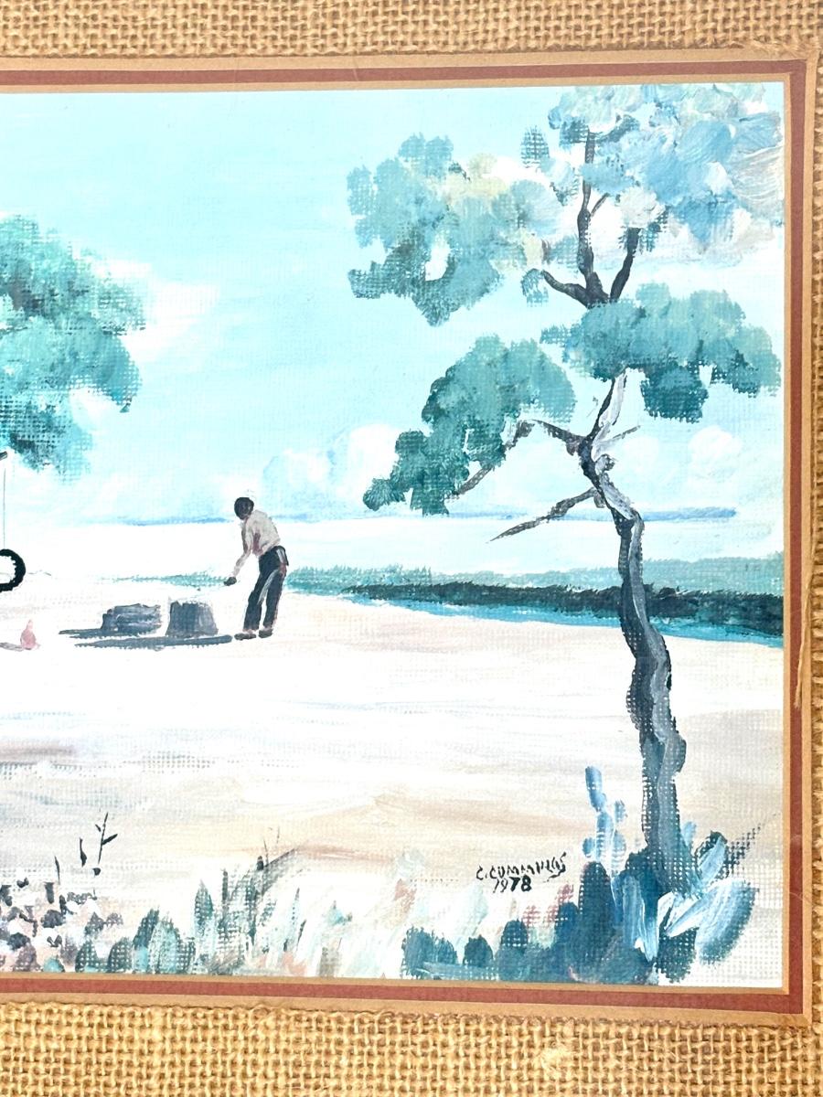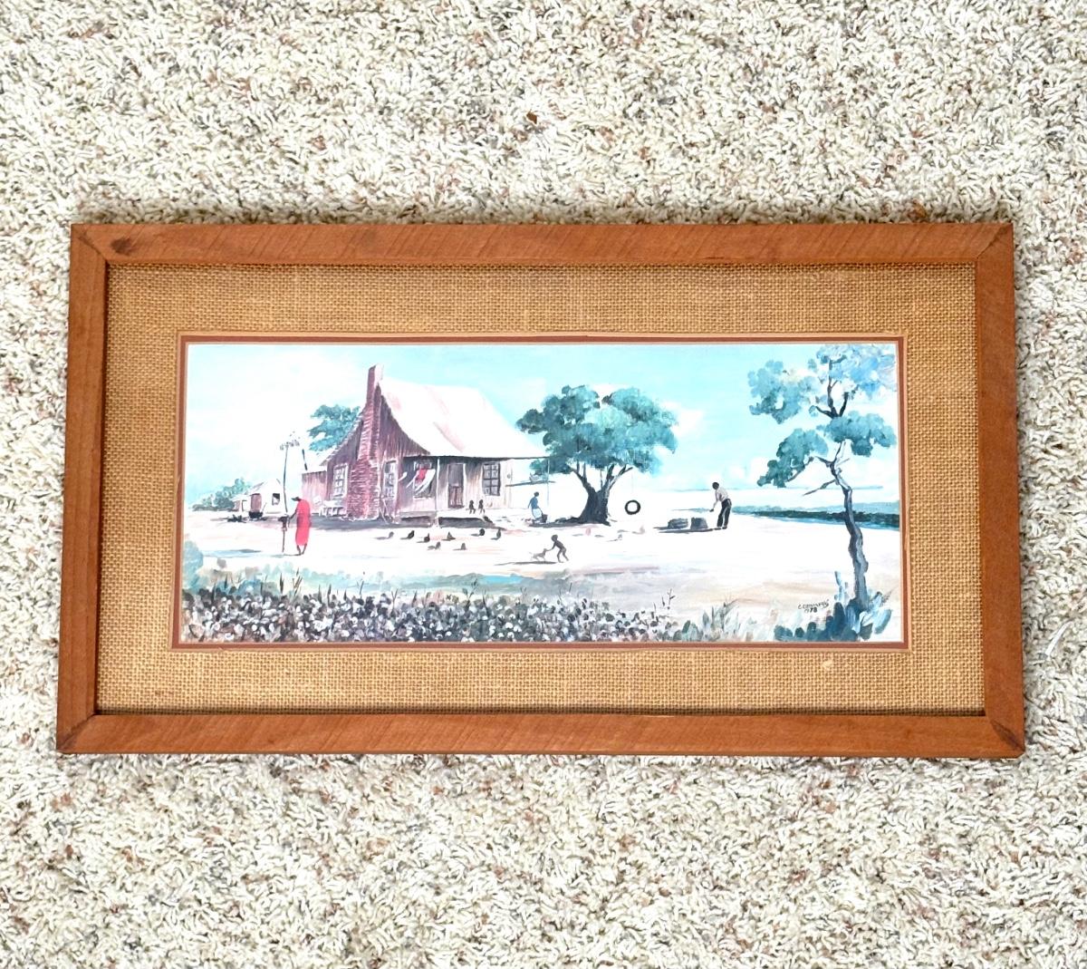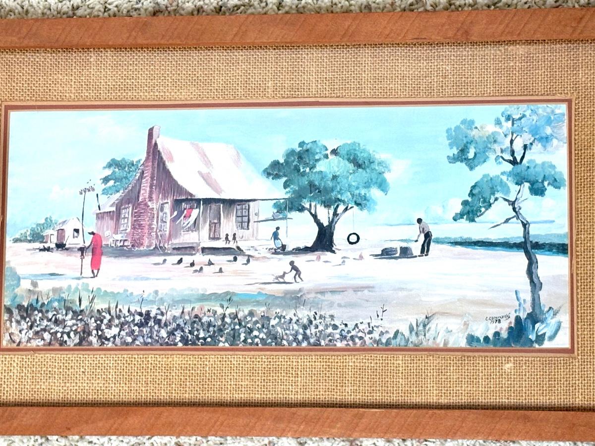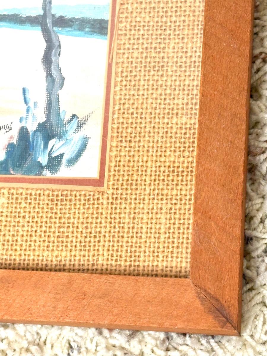 Bamboo Matted Watercolor Beach house Painting - C. Cummings 1978