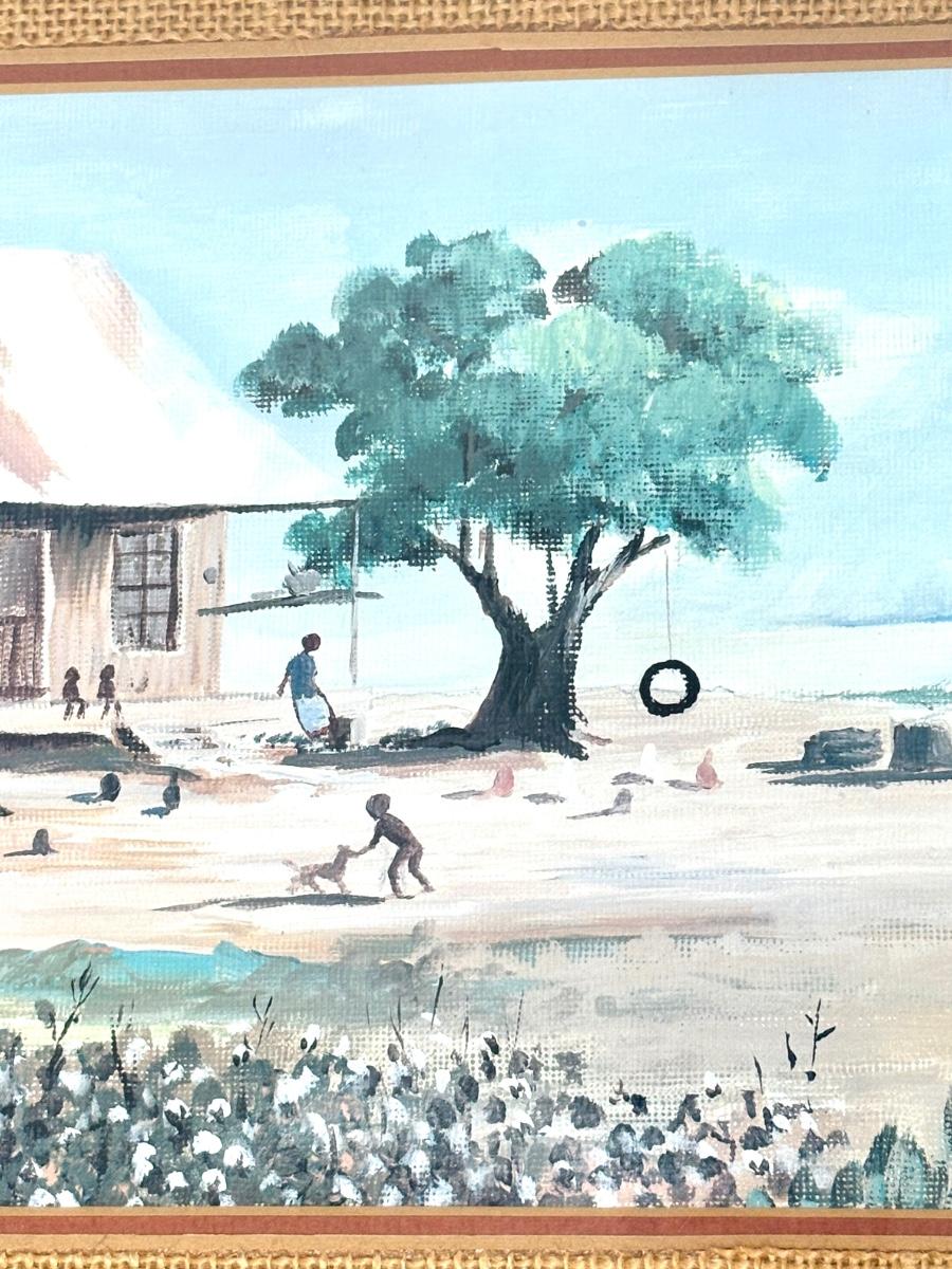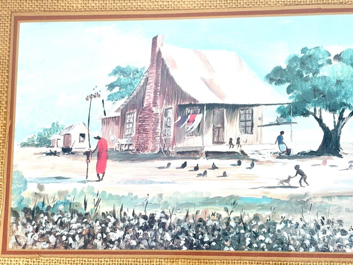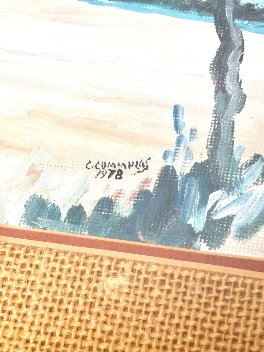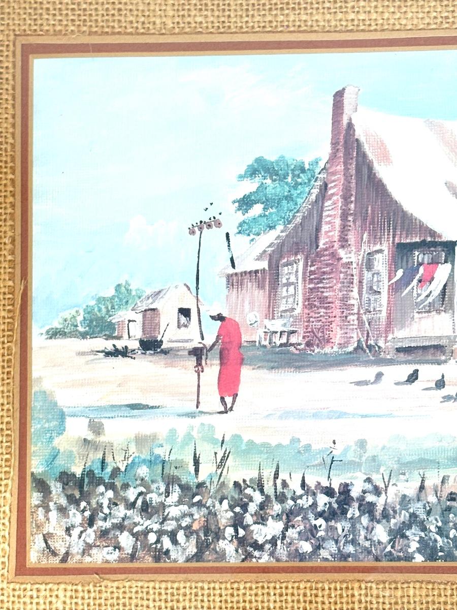 Bamboo Matted Watercolor Beach house Painting - C. Cummings 1978