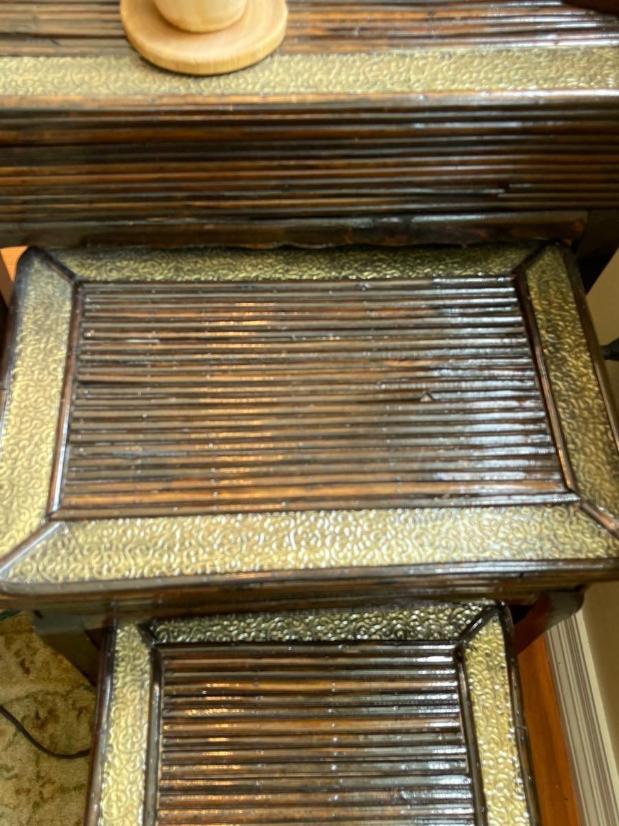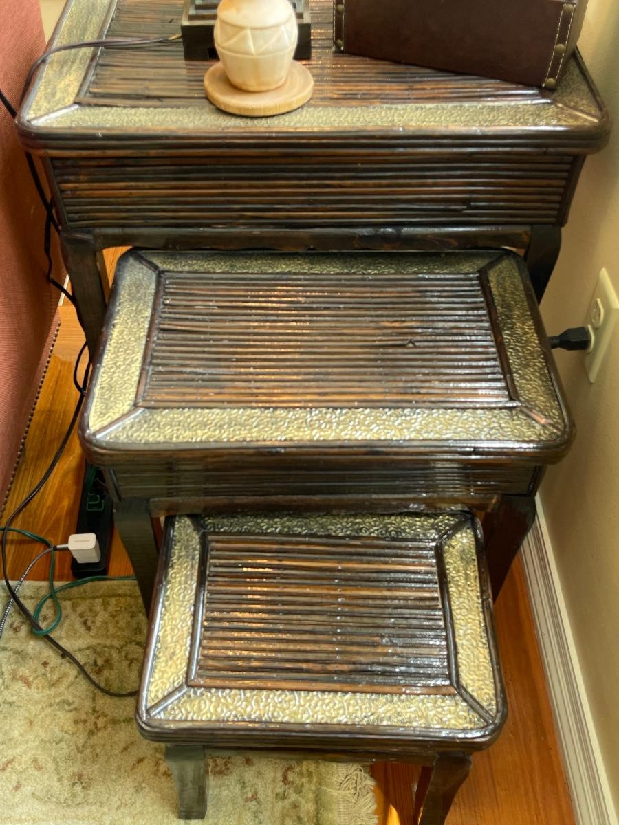 Vintage Three Piece Asian Rattan/Bamboo Nesting Tables