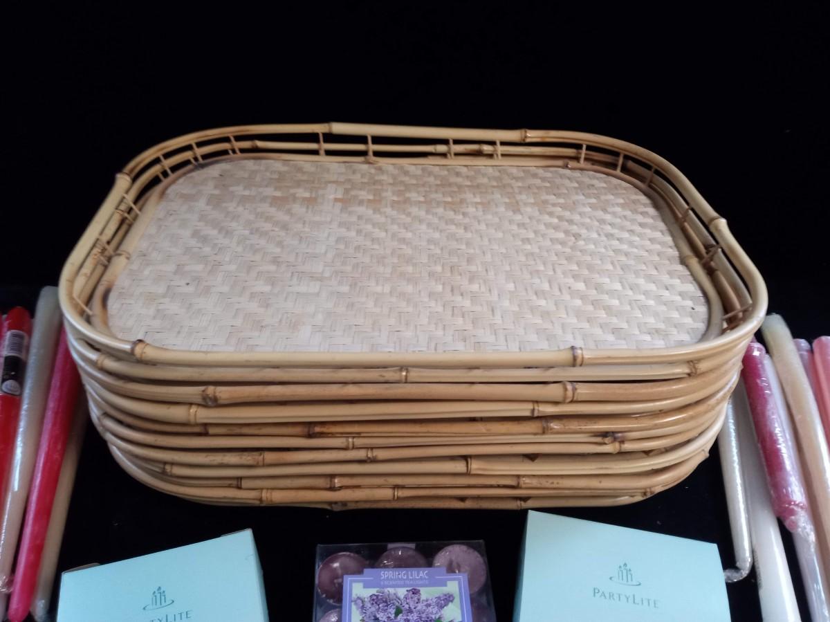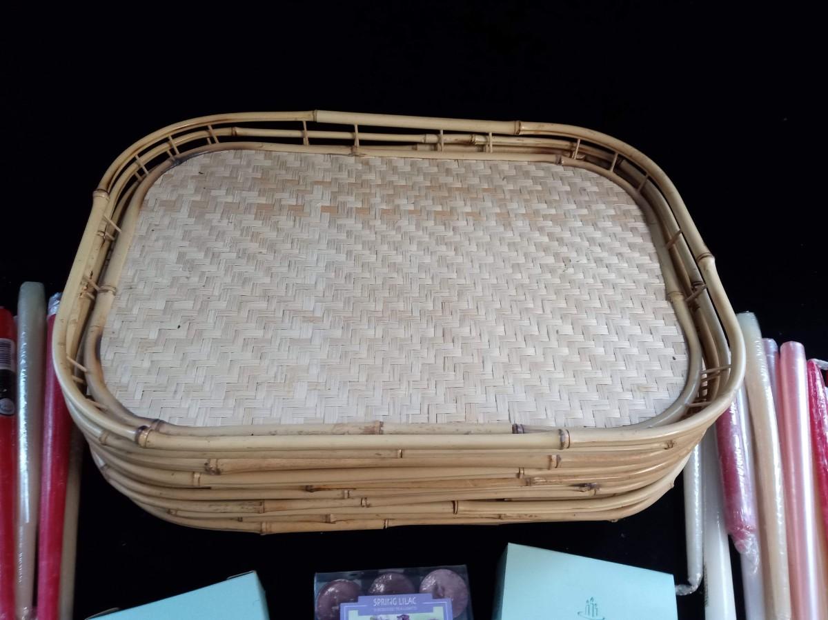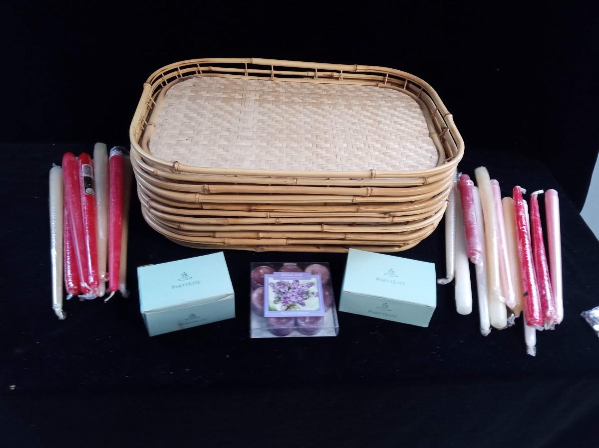 BAMBOO SERVING TRAYS AND A VARIETY OF CANDLES