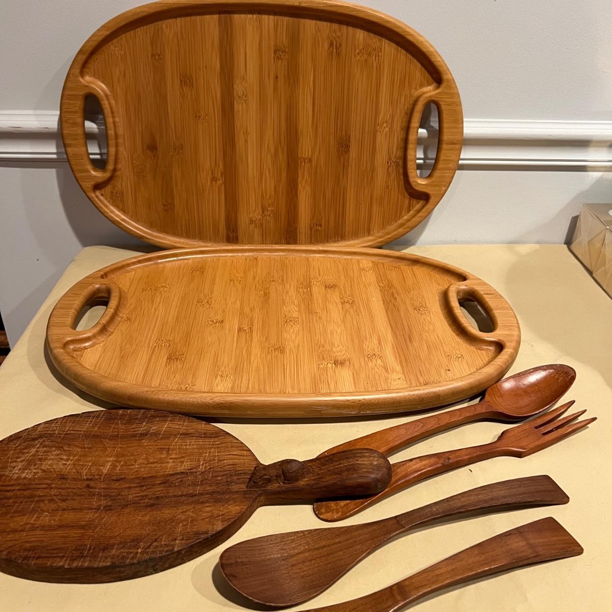 Bamboo Trays & Wooden Kitchen Accessories Lot