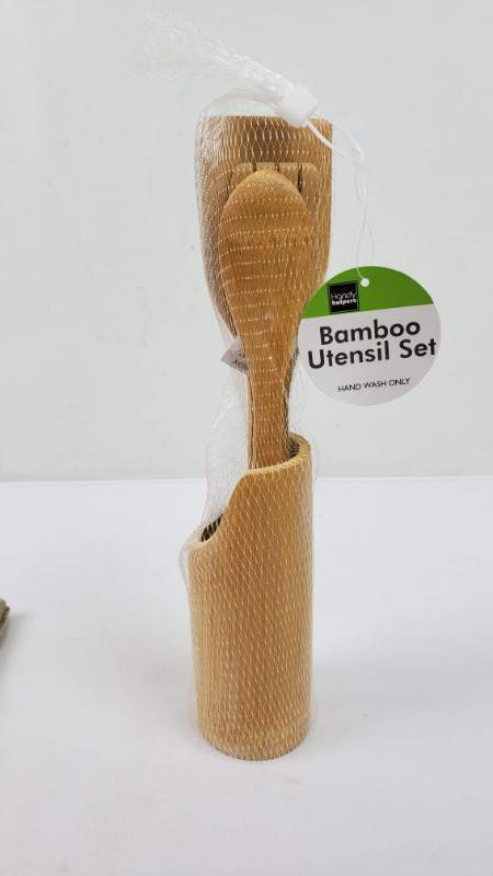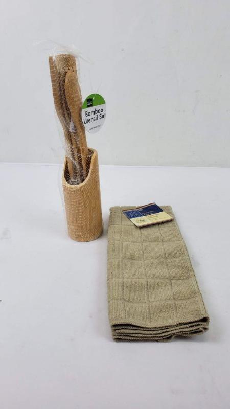 Bamboo Utensil Set & Tan Kitchen Towel - New