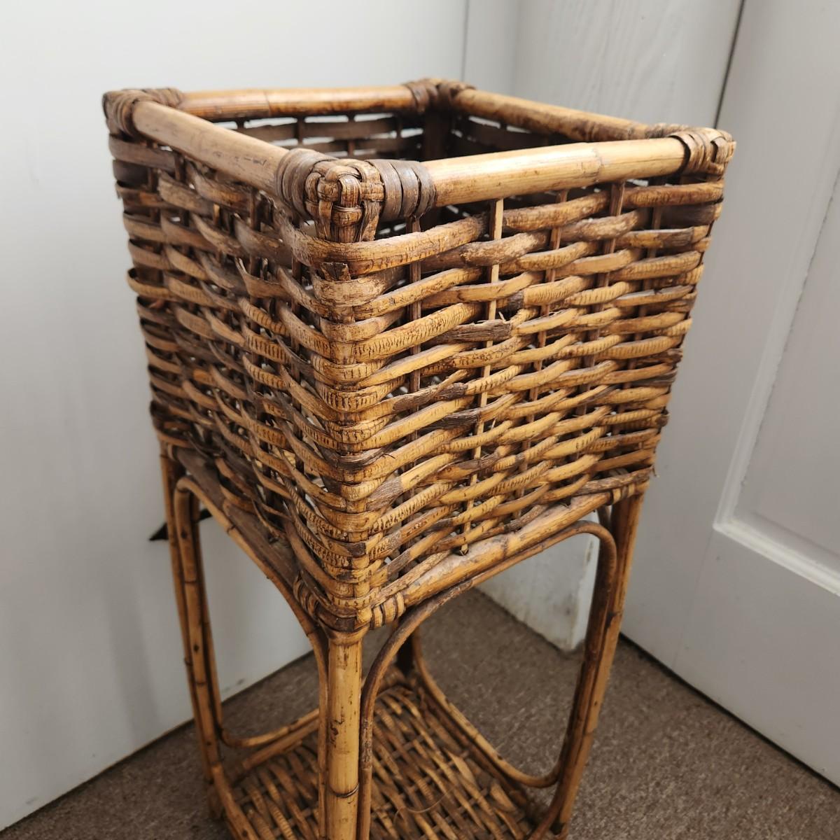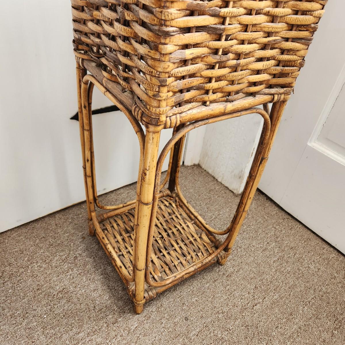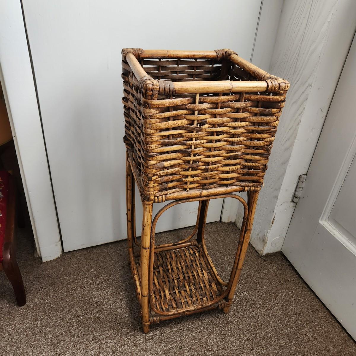 Bamboo Wicker Plant Stand Tiki Bar Decor 10x10x28