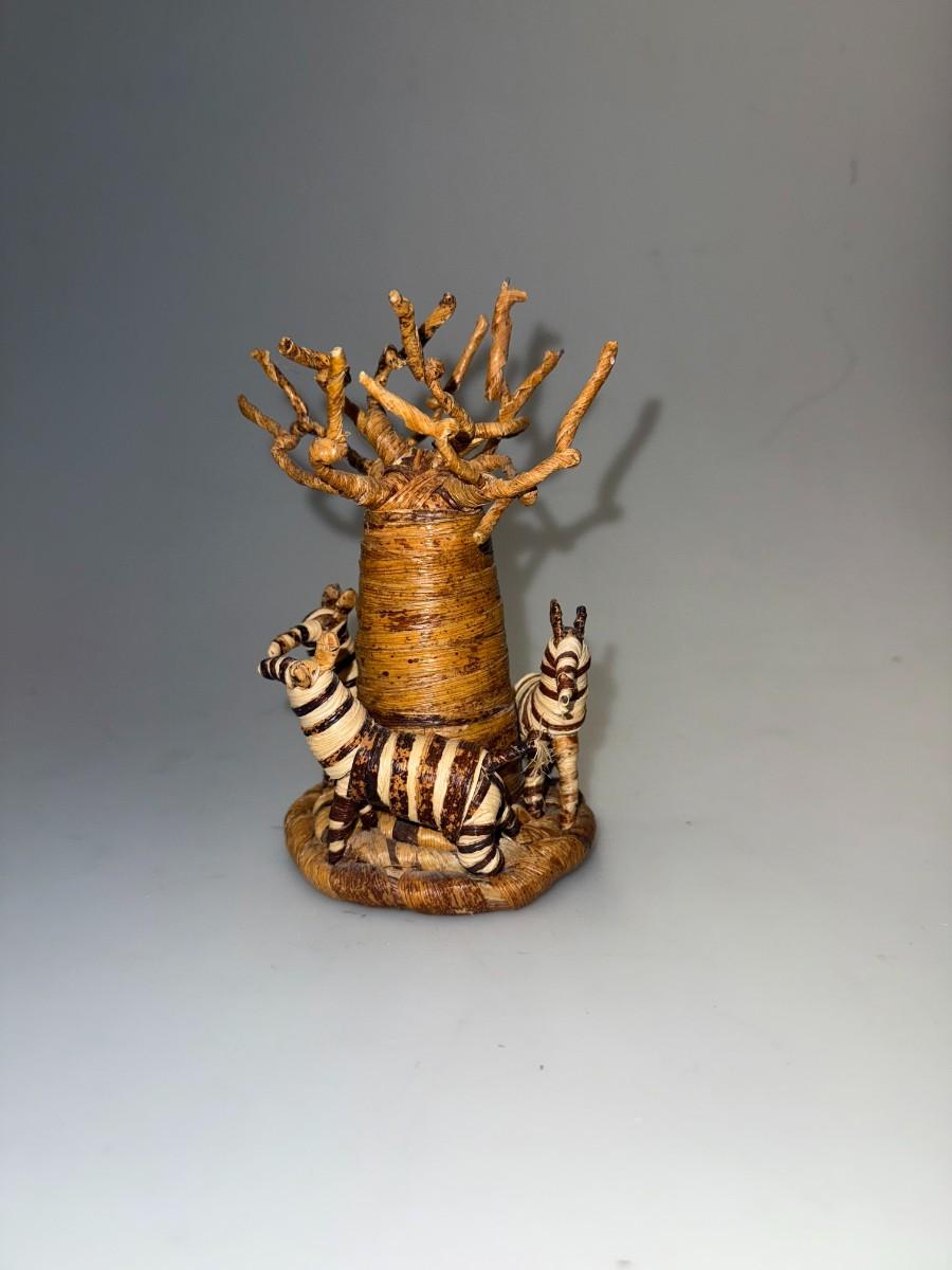 Banana Fiber Baobab Tree Sculpture with Zebras