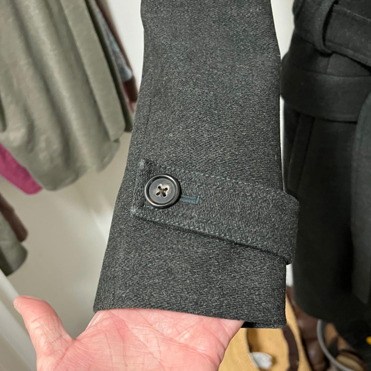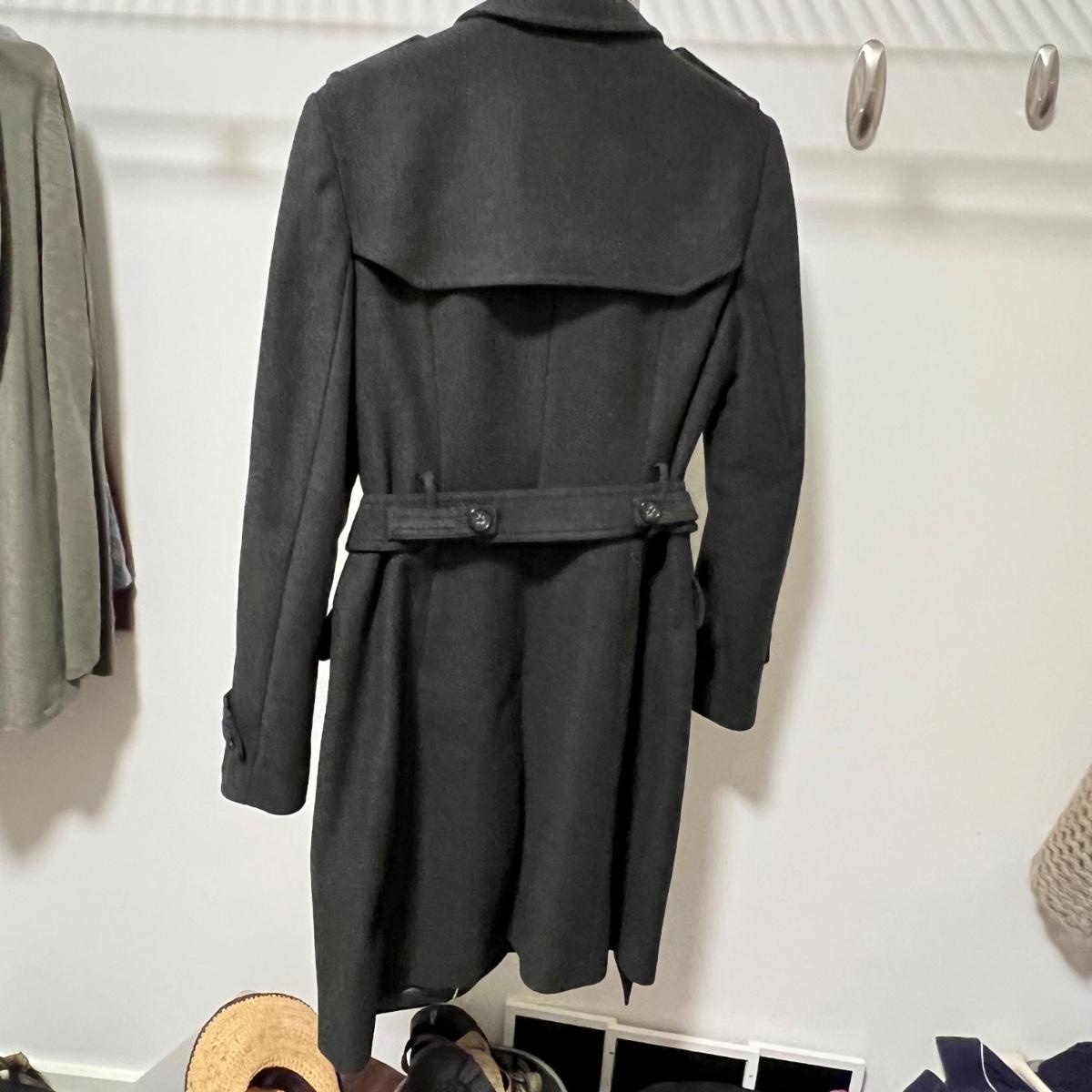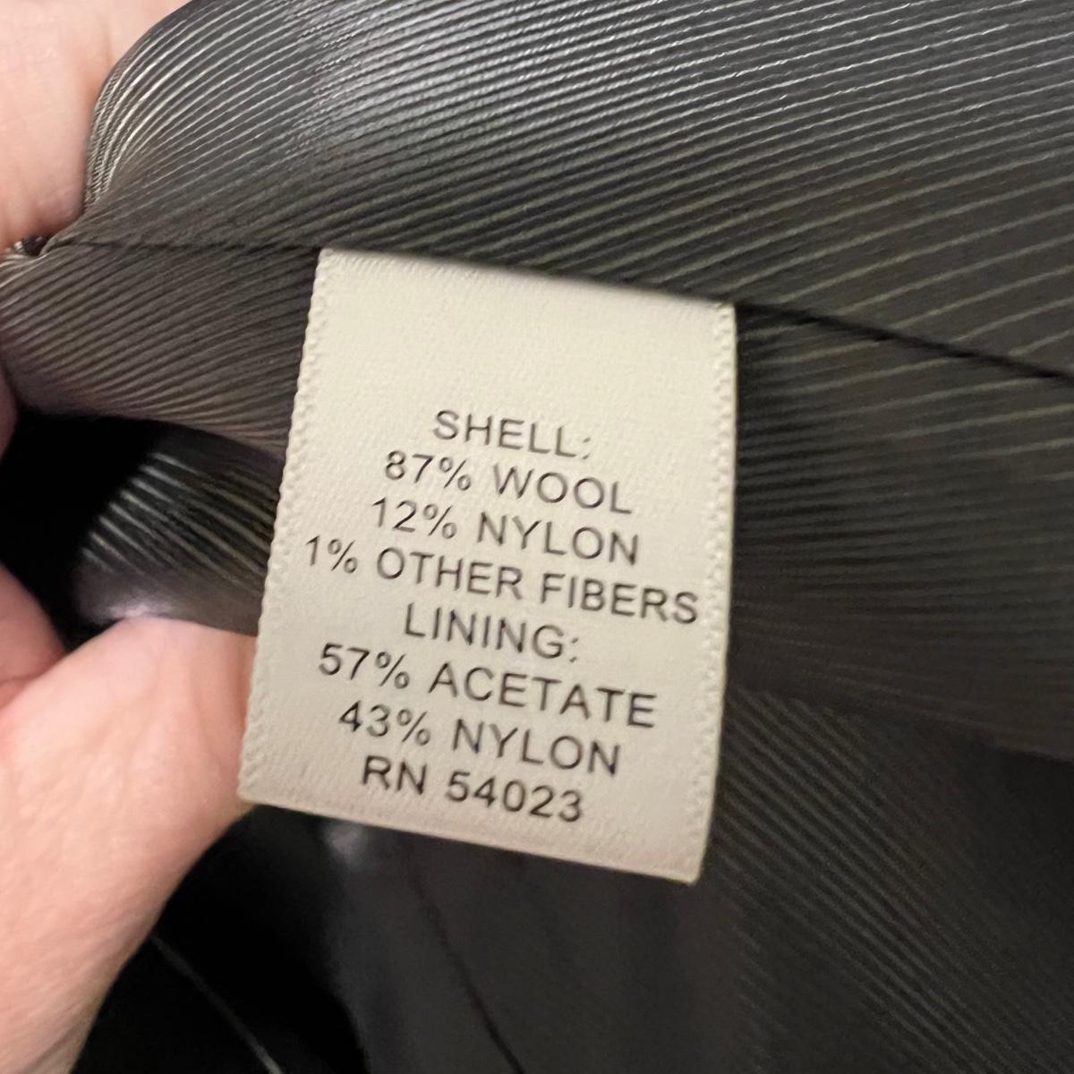 This lovely wool trench coat by Banana Republic is a dark charcoal grey with a dark gray nylon lining. Jacket is size medium and in excellent condition.