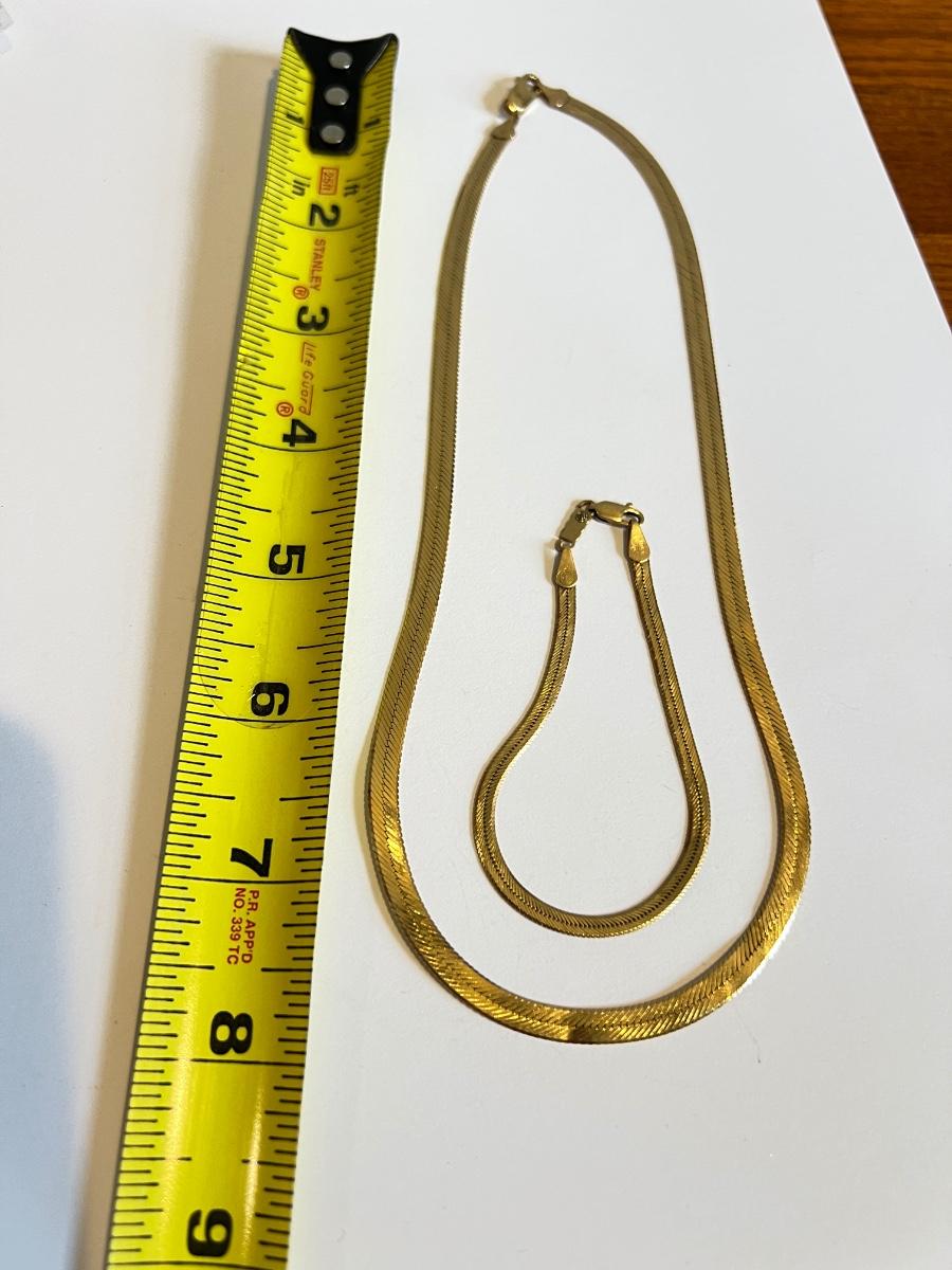 14K Gold Herringbone Necklace Bracelet Set 17.83 Grams