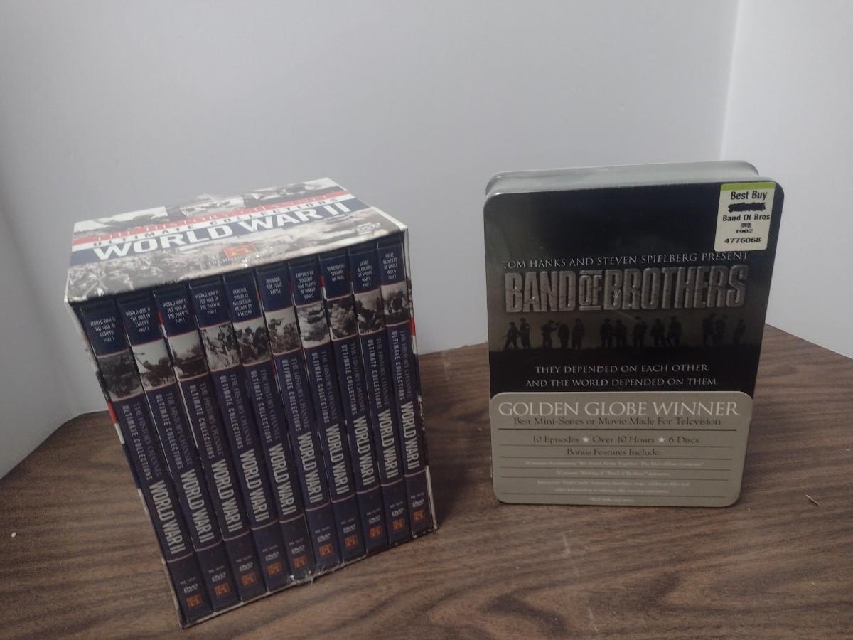 Band of Brothers DVD Collection in Tin Case and History Channel WWII Ultimate Collections DVD Set Both New in Wrap