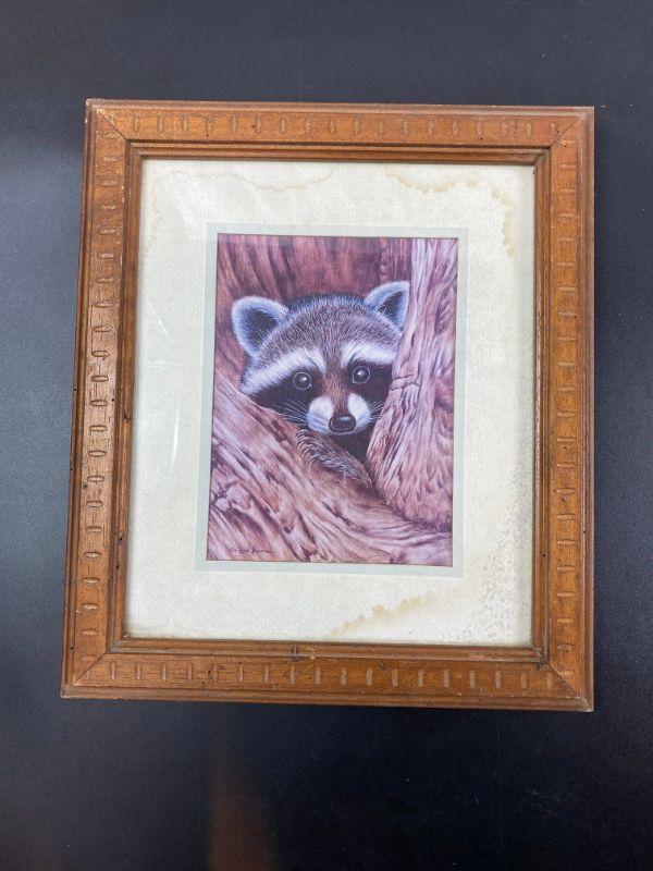 BANDIT RACOON HIDING IN A TREE BY KAY LAMB SHANNON 12 X 14