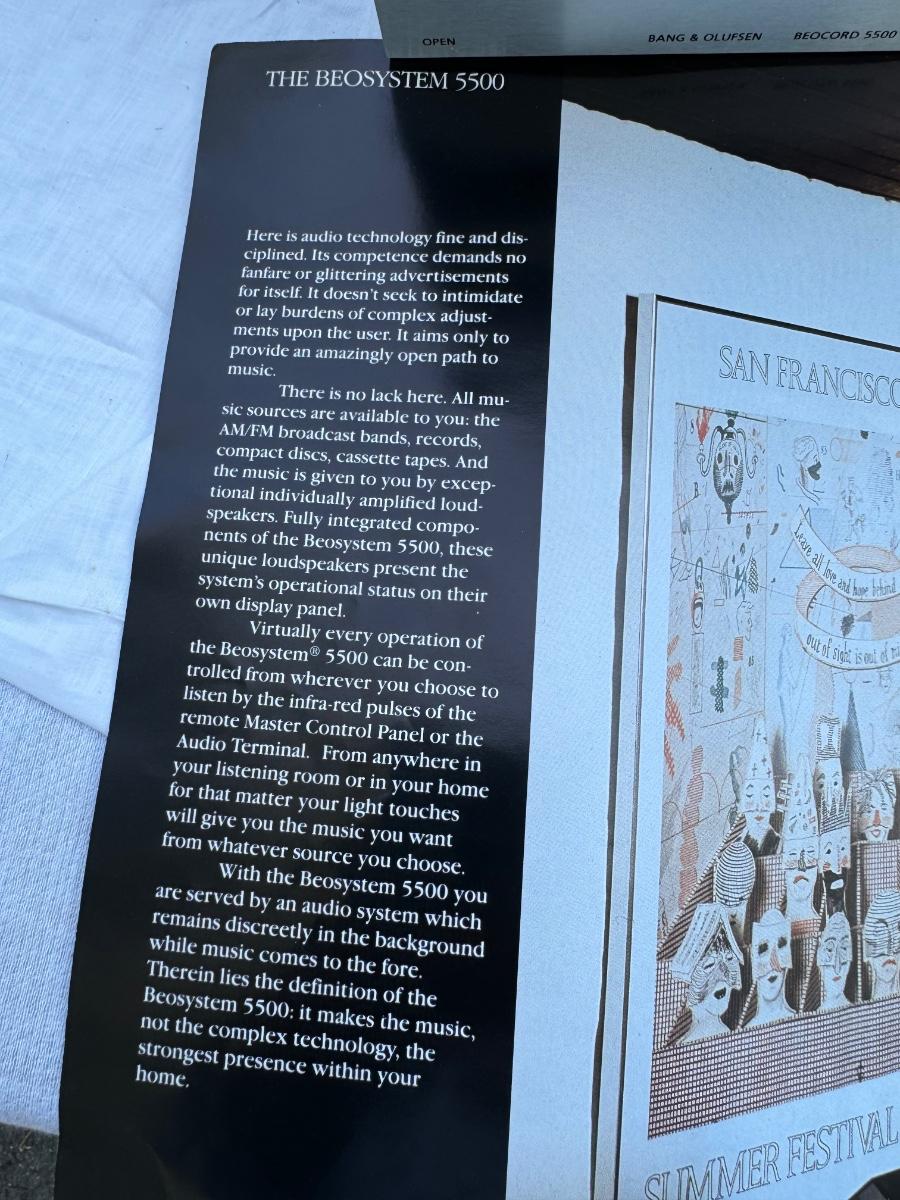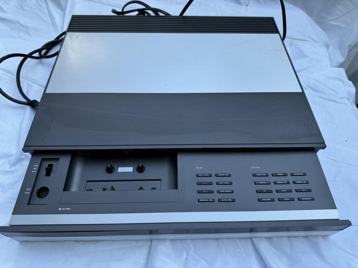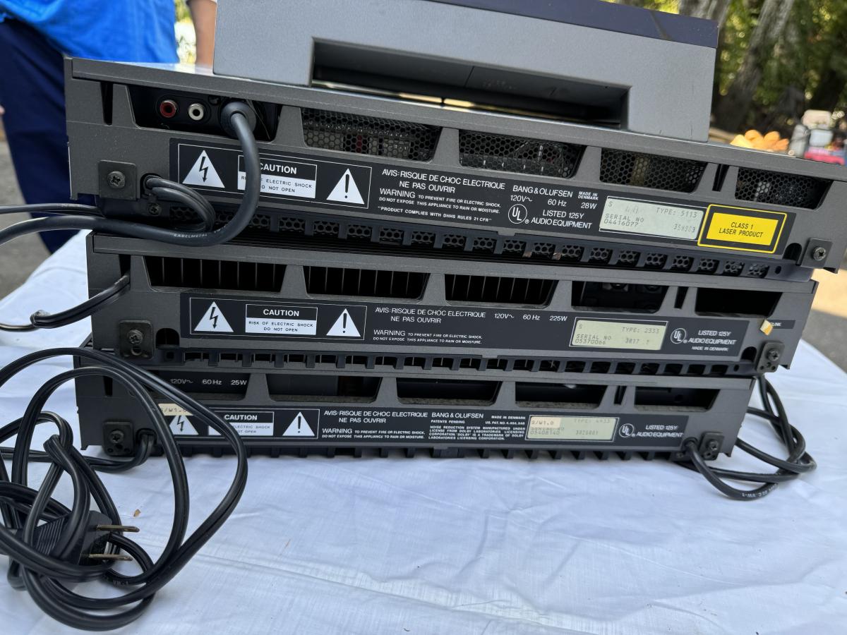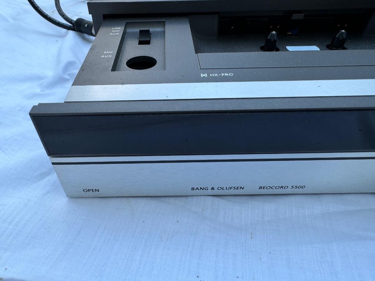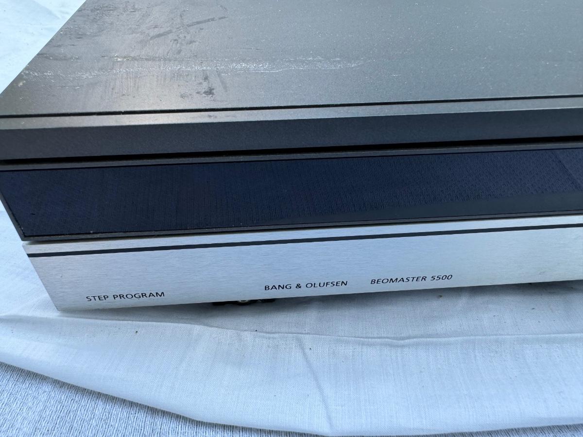 Buying as is, as found in this wonderful estate. See MANY PHOTOS for content, condition and dimensions. Never a Buyers Premiums or Credit Card Fee. All lots start at just $10 and sell with No Reserve to the highest bidder. Bang & Olufsen 5500 Series - Total Four Pieces; Master Control Panel 5500, Beogram CD 50, Step Program Beomaster 5500 Receiver, Beocord 5500 Cassette Player. *Powers On