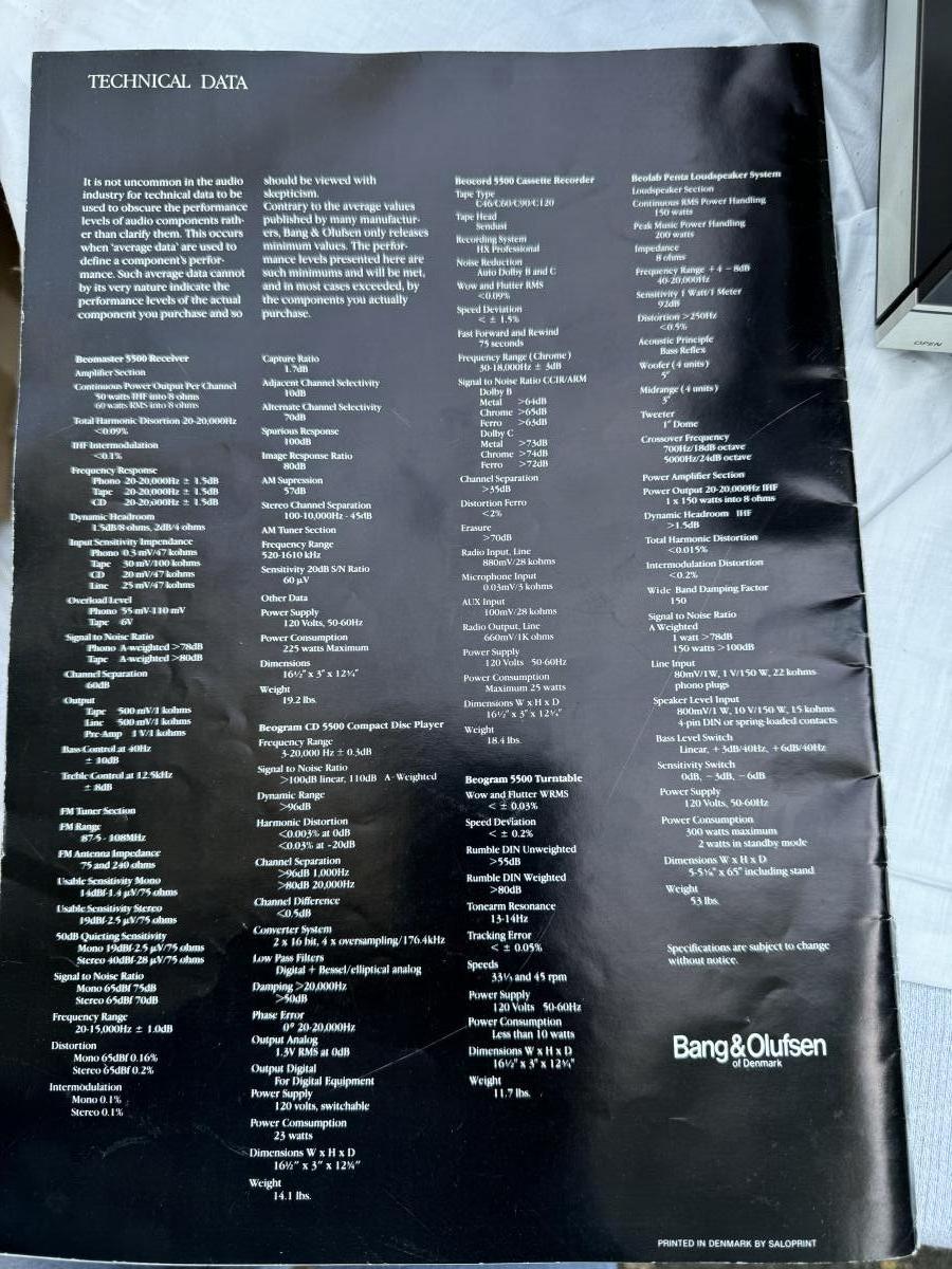 Bang & Olufsen 5500 Series (Total 4 Pieces) Master Control Panel/Receiver/CD/Cassette