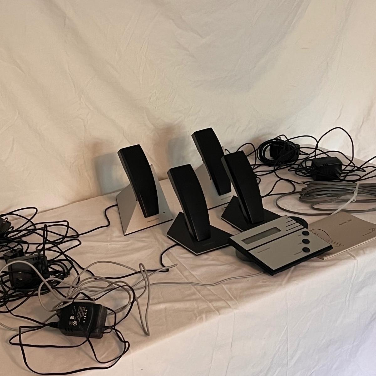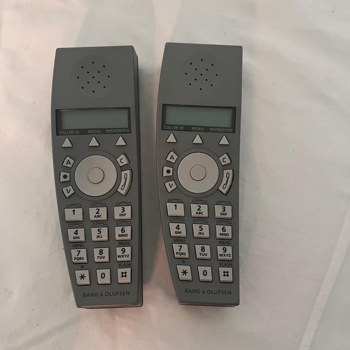 This lot includes one Bang & Olufsen BeoTalk 1200. It has a built-in Caller ID function. Also included are four Bang & Olufsen home phones with plug-in chords. All items turned on when plugged in. Shipping available.