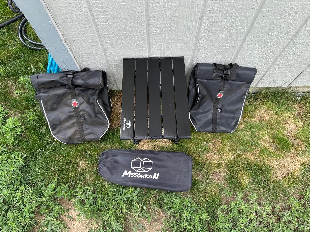 BANJO BROTHERS WATERPROOF CYCLING PANNIERS AND A FOLDING TABLE
