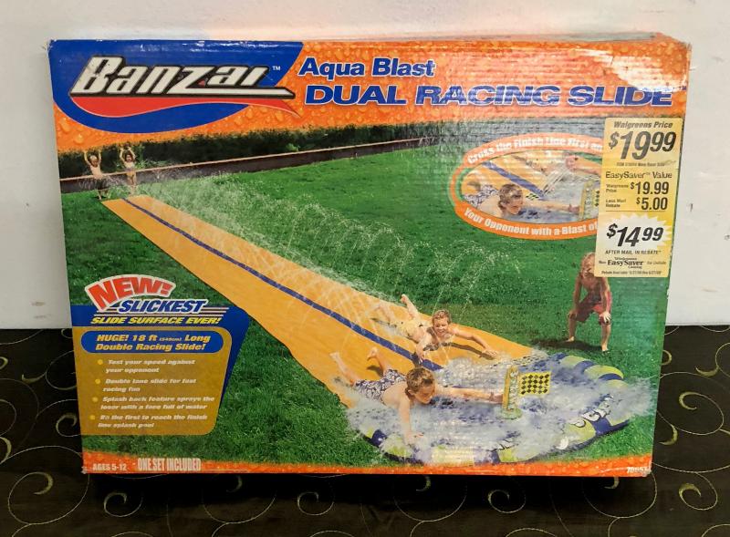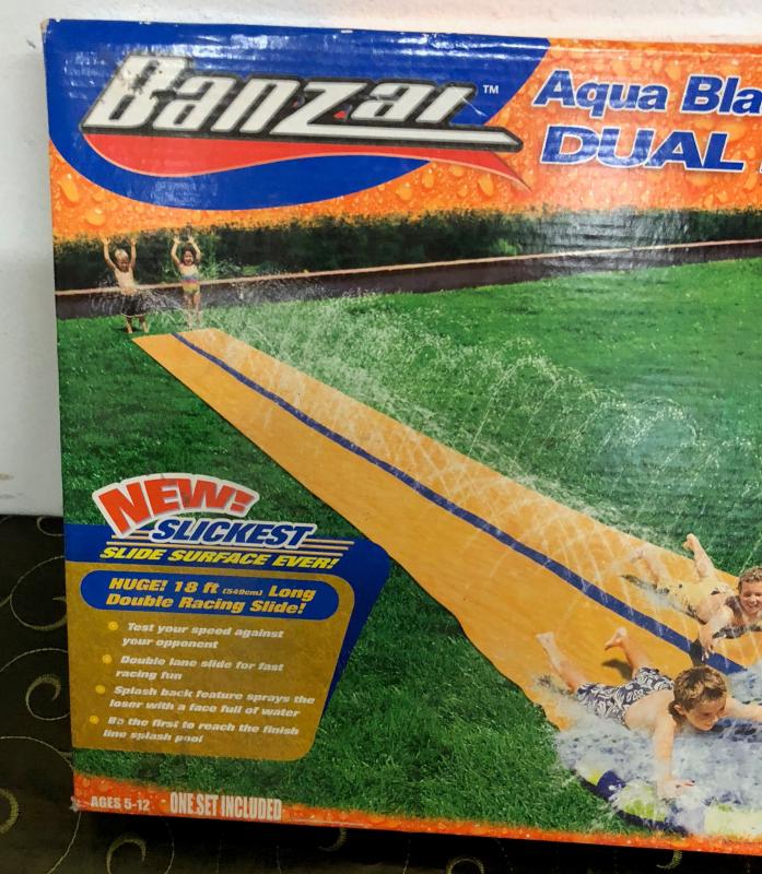 NEW Slickest slide surface ever...on this BANZAI AQUA BLAST DUAL RACING SLIDE...